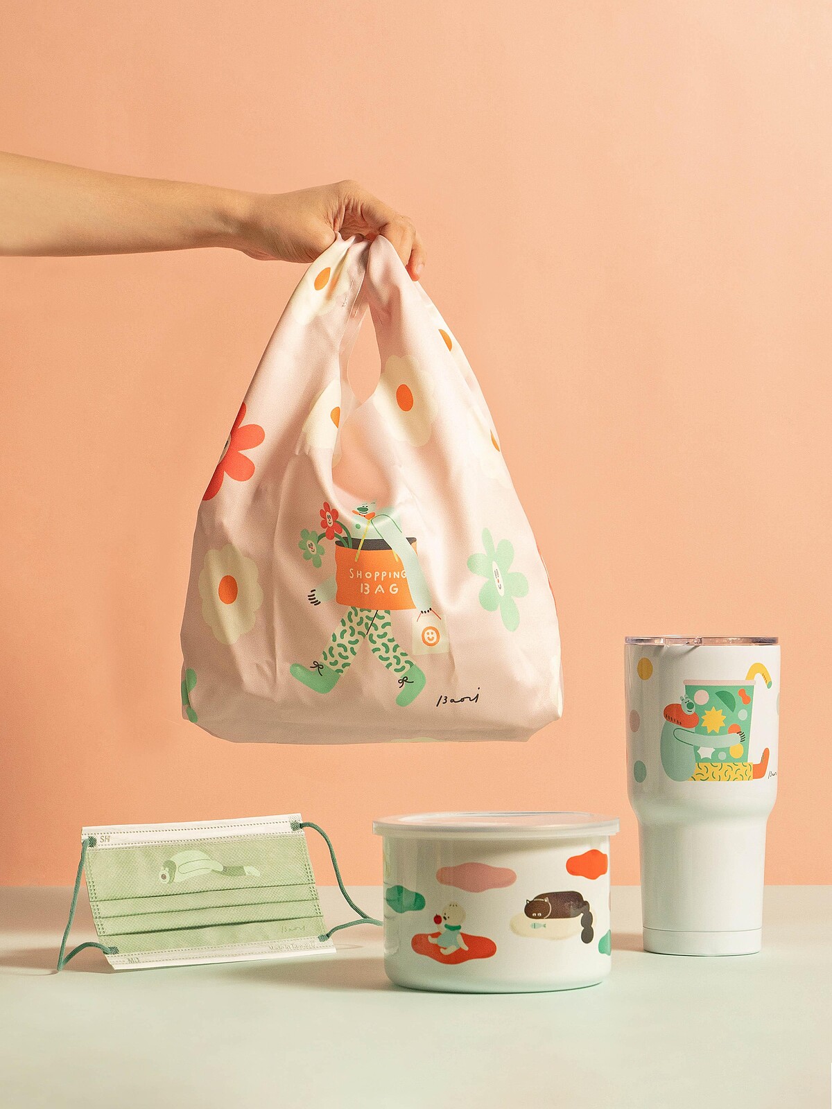 除了有繽紛可愛的拍照展區,這次更同步推出多款獨家聯名周邊商品,包括抹茶綠「閉著眼睛也再笑口罩」、粉紅熊超人「心花怒放環保袋」,以及「你在吃什麼保鮮碗」與「隨手可得冰霸杯」,每一款都Q萌之餘又相當實用。