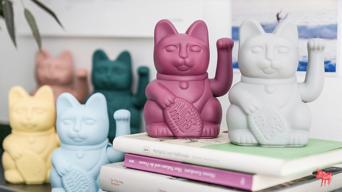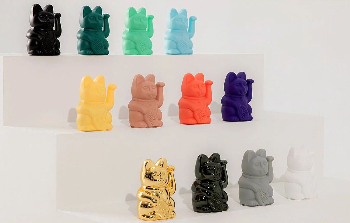 傳統招財貓左手象徵招福,而右手則象徵招財,不少店家會在店內擺上一隻招財貓來祈求好運!德國 Donkey Product 設計公司對東方文化也十分著迷,進而開始著手設計屬於現代的招財貓擺飾。