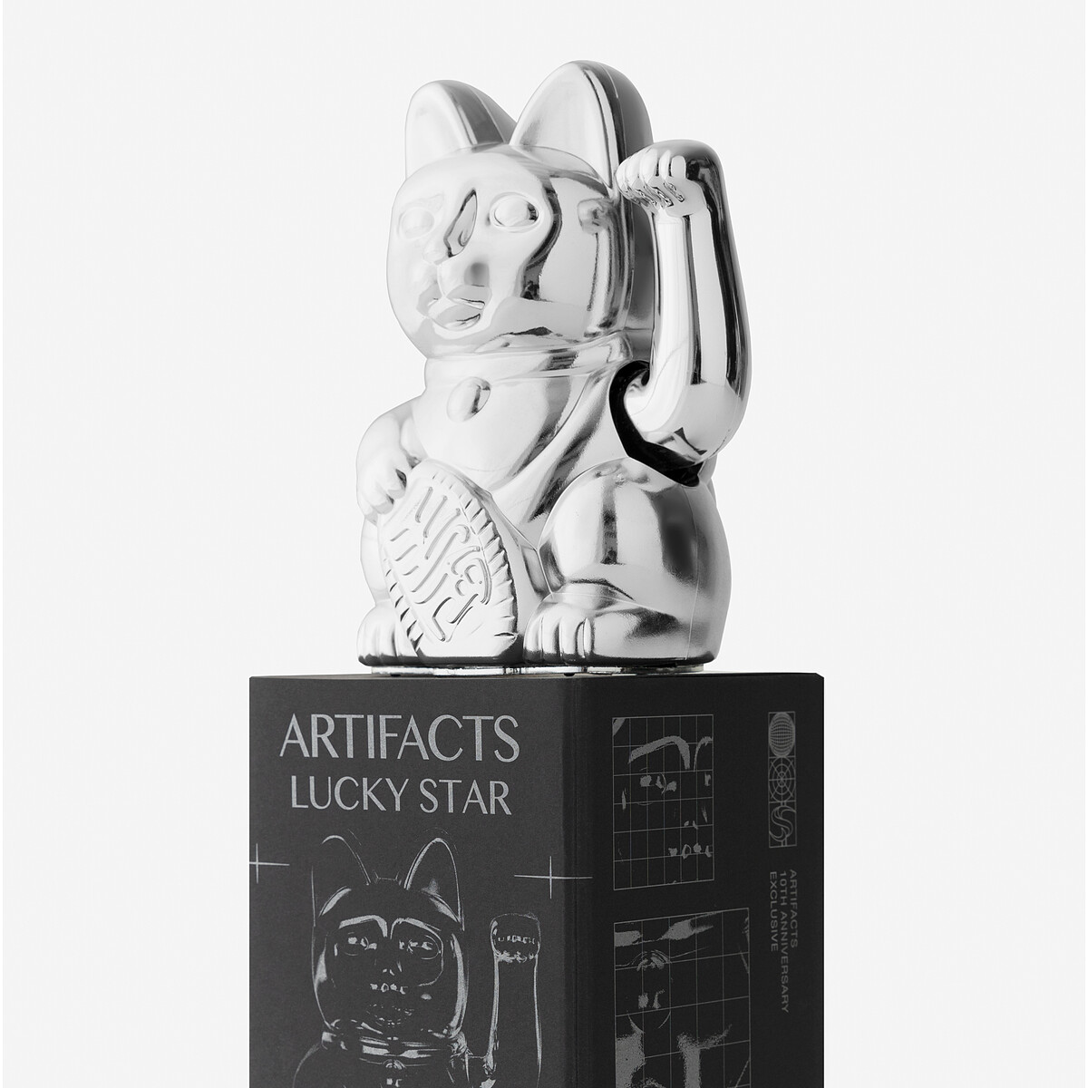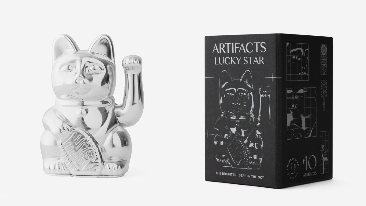 ARTIFACTS 10週年這次與德國設計 Donkey Product 招手招財貓(Maneki-Neko)的全台獨家款LUCKY STAR,以THE BRIGHTEST STAR IN THE SKY 概念為發想,外觀使用亮面的「太空銀」作為獨家選色。