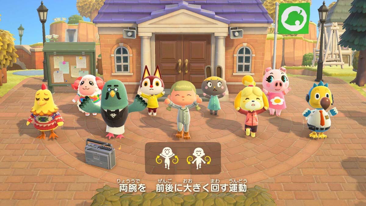 玩家們可以使用按鍵或是使用Joy-Con進行體感操作,與島民們一起跳廣場舞,也可以約好友們一起來島上跳舞!