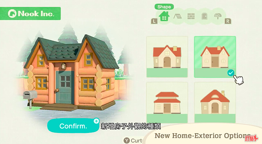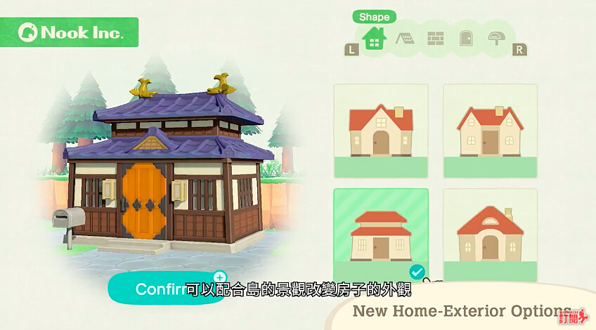 在服務處中可以找狸克更改房屋外觀,現在選擇更加多元,讓玩家可以配合島嶼的景觀選擇不同的房子造型!