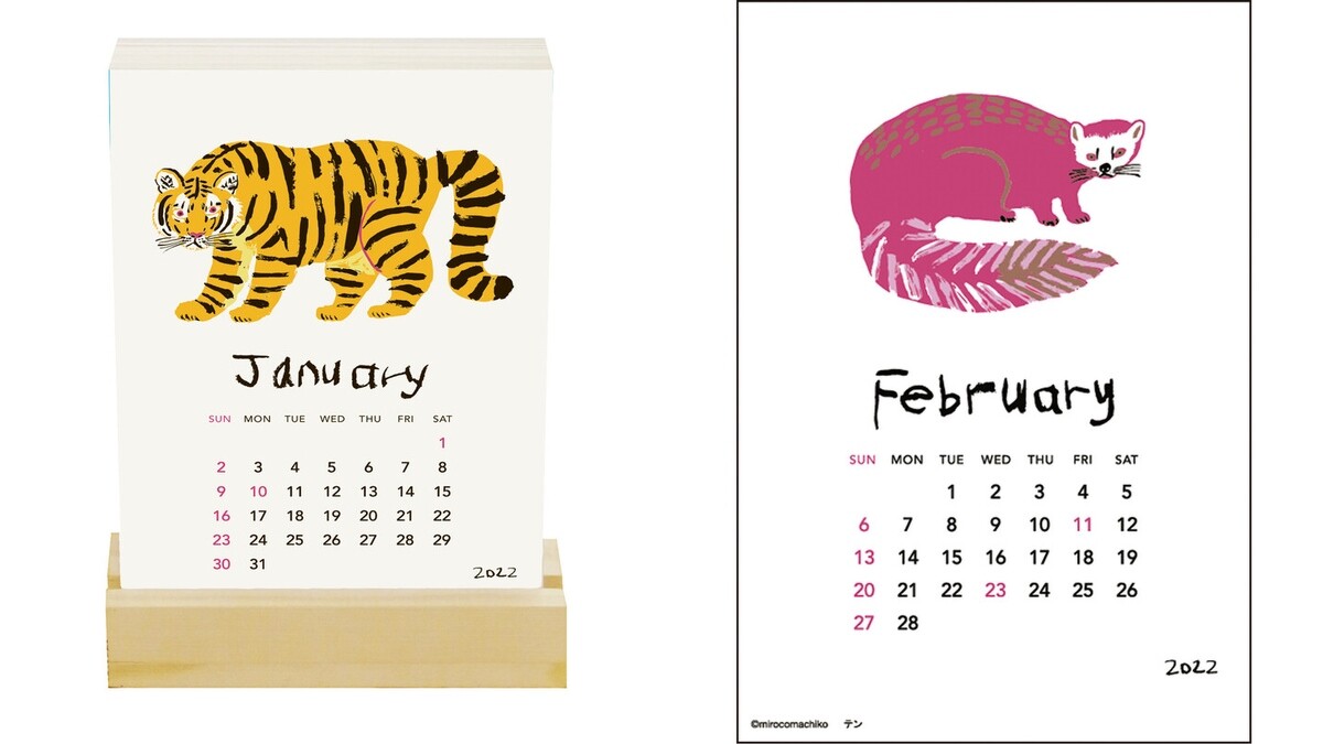 沒有使用手帳習慣的人,也可以為居家增添動物生命力!誠品書店獨家引進日本療癒系文具品牌Greeting Life,旗下的2022木座月曆便能每個月看到老虎、狐狸等手繪動物圖案,能一目了然星期與假日分別,配上溫潤質感木製底座,除了自用賞心悅目,更是送禮好選擇。