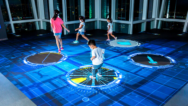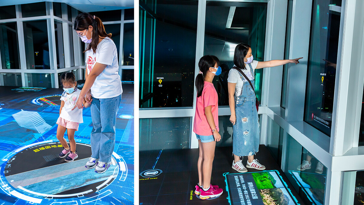 近年來,台北101致力於打造構適合全齡造訪的旅遊空間,此次,透過經濟部工業局科專計畫肯定,由三商電腦與晶彩亞太公司共同打造的「4D體驗空間/4D Experience」,結合101觀景台場域特殊性,將89F「認識台北」觀覽情境虛實整合,利用高科技LED全彩式地磚顯示屏,營造沉浸式類AR的擴增體驗場景;結合4D多媒體互動科技與日夜窗景變換,播映素材融入101大樓特色,擴增體驗場景,深化旅客旅程記憶,也讓大人、小孩更清楚瞭解台北城市的發展及台灣建築之標竿科技。