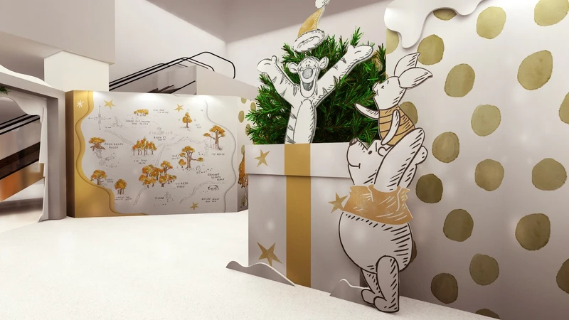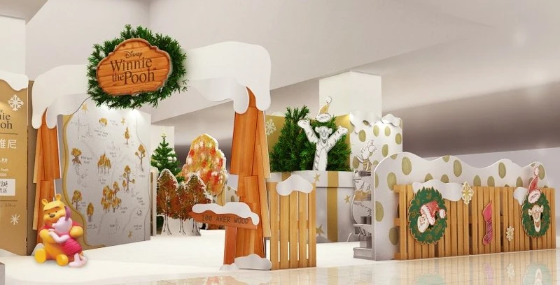 「走進小熊維尼的百畝森林」雪白聖誕快閃店插旗中和環球購物中心