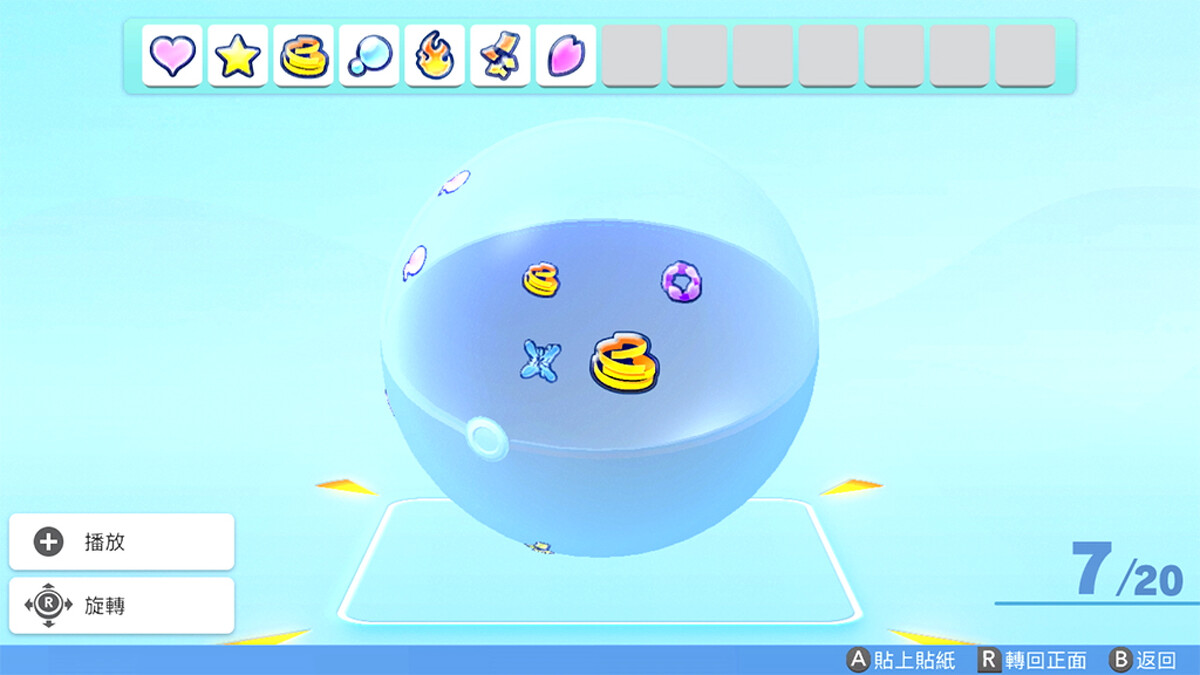 而貼紙的種類多達90種以上,有像飄落的花瓣、燃燒的火焰等等,只要將貼紙貼到球殼上就能輕鬆改變設計,每一款貼紙都可以相互搭配,貼上貼紙即可設計出各種不同的特效組合。一個球殼上最多能貼20張貼紙,從千變萬化的組合中設計出只屬於獨一無二的特效吧!