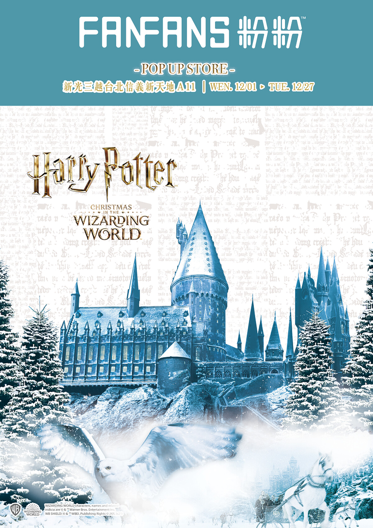 《哈利波特》以奇幻的魔法世界風靡全球,成為了經典不敗的巨作!這次FANFANS粉粉以《哈利波特》為主軸打造全新哈利波特快閃店,進駐台北信義區信義區新光三越A11館,滿滿的《哈利波特》周邊商品與大家一起度過一個魔幻的聖誕節!