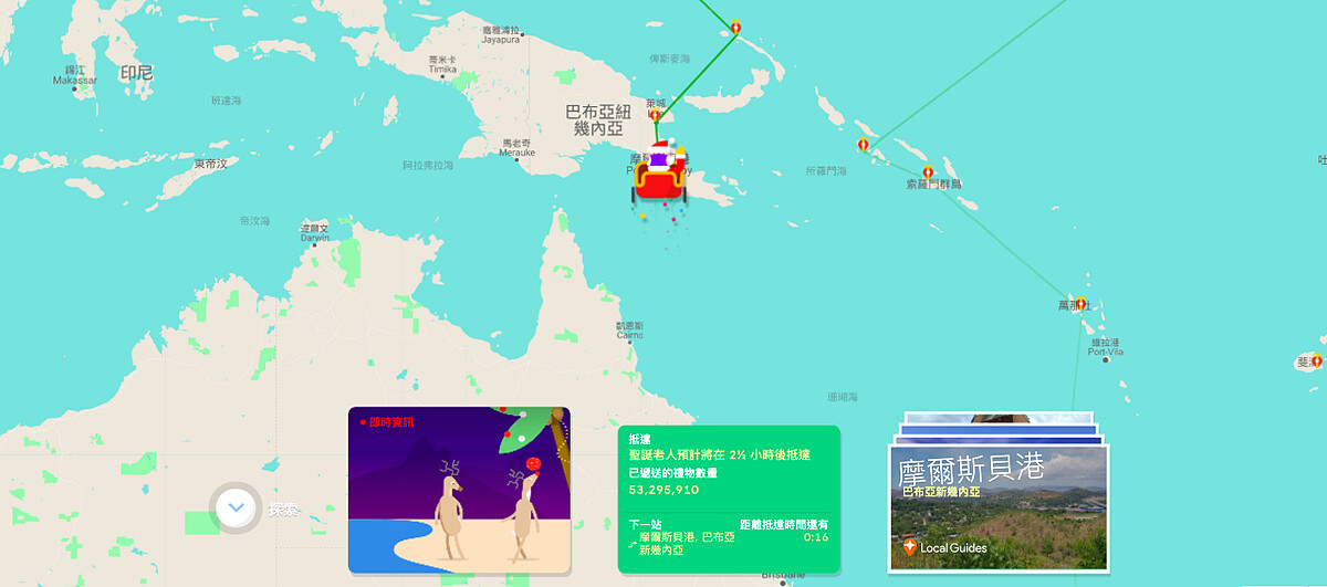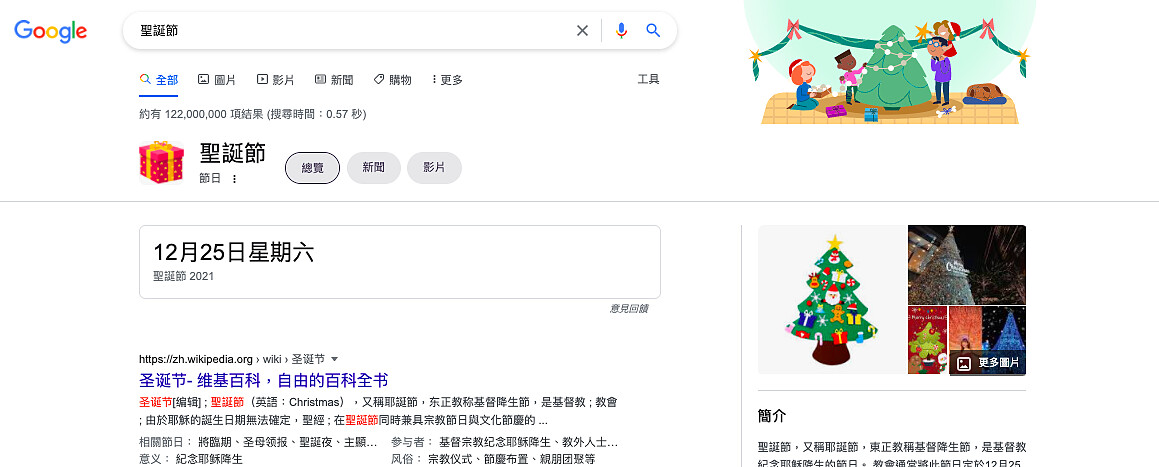 第一步先使用Google搜尋「聖誕節」相關關鍵字,接著點選左上方的禮物盒,就能前往Google聖誕老人追蹤器的專屬頁面啦!