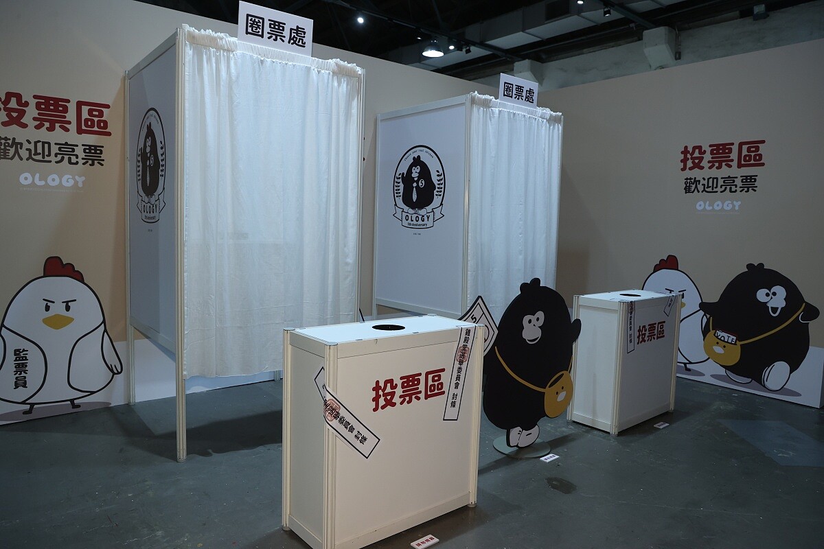 最有趣的是將快閃店打造成投票所,展區結合台灣選舉元素與奧樂雞憨萌特性,特別打造六大拍照展區:精神堡壘區、政見發表區、選前夜廣場、競選總部、蛞蝓競選總部與最終投票所。