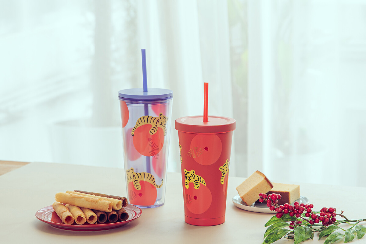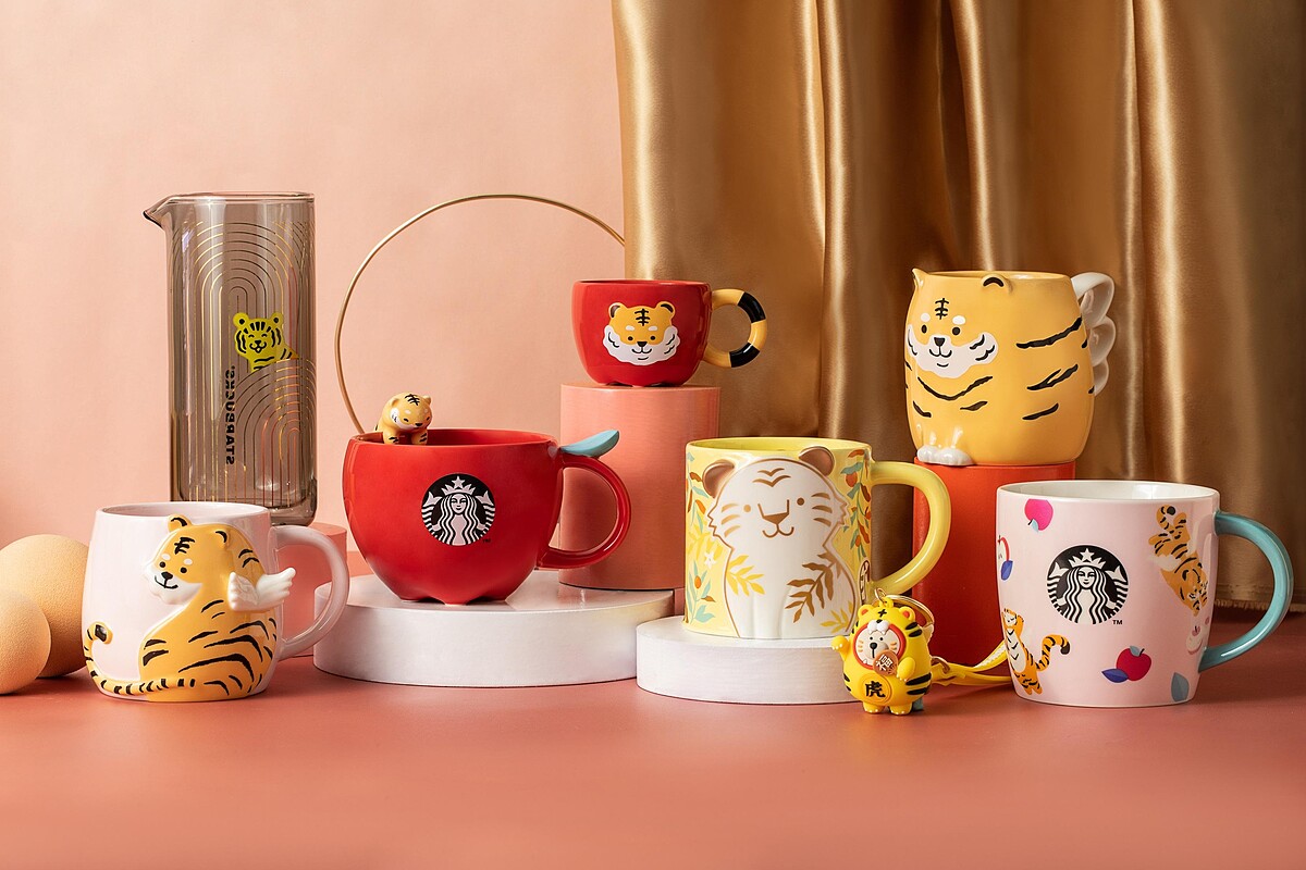杯子控荷包又要小心啦,星巴克今年全新推出虎年商品,將虎寶寶印在各式杯款上,在明亮的黃色與天藍色、應景吉祥的紅色與大膽的黑色點綴金色映襯下,看起來相當討喜。