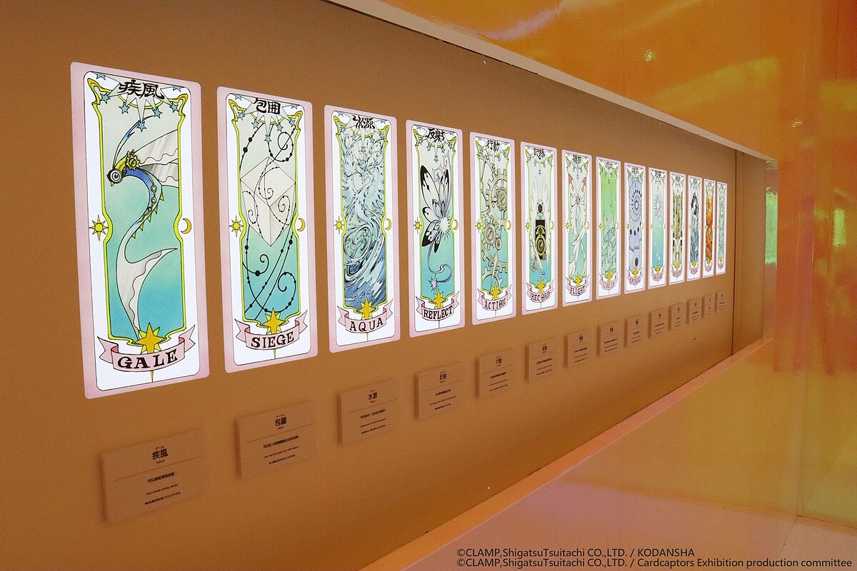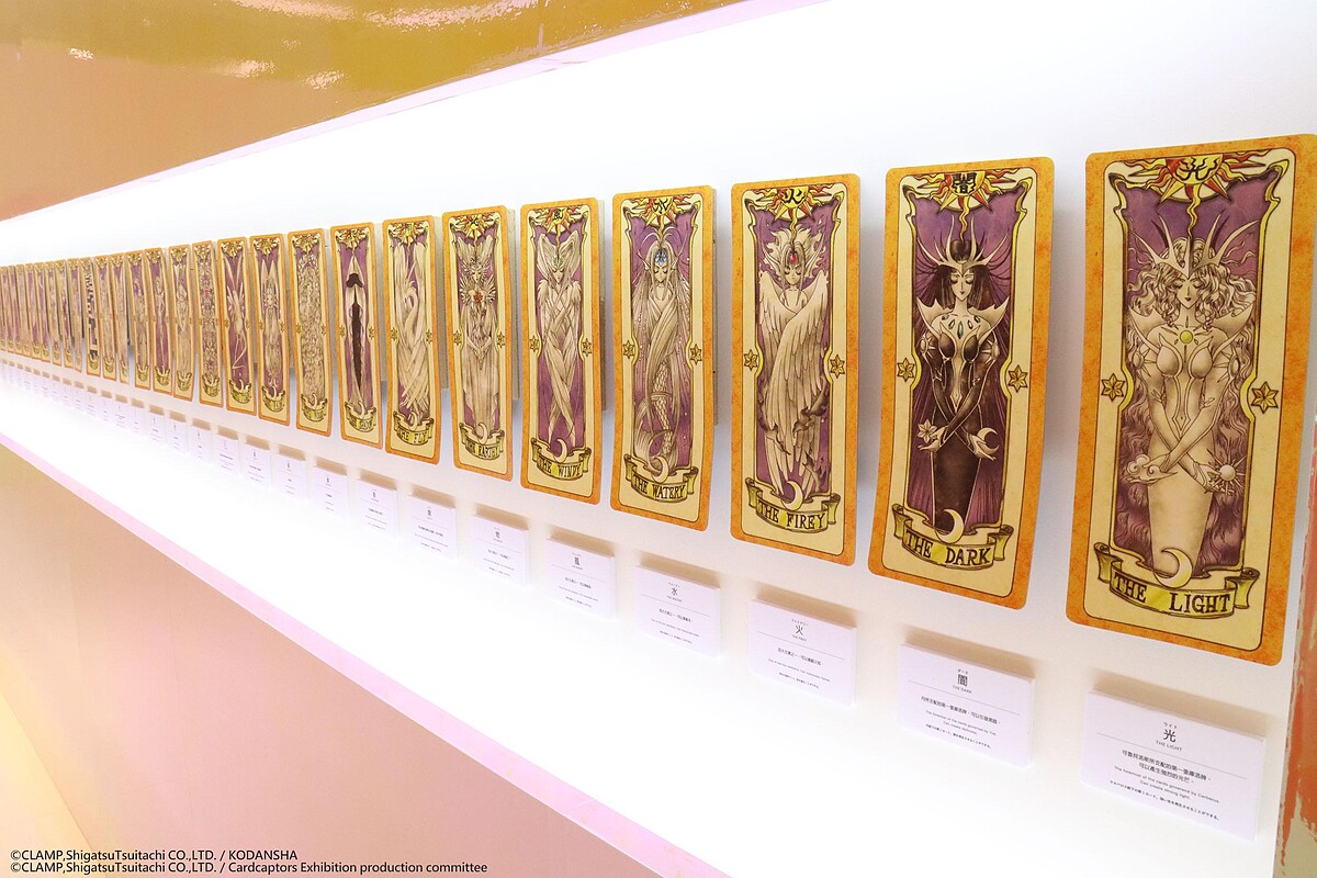 而《庫洛魔法使特展》打造了特別展區「卡牌的房間」,在這裡可以看到在作品中出現的庫洛牌、小櫻牌及透明牌外,更精心還原了原作正面與背面不同的圖案。