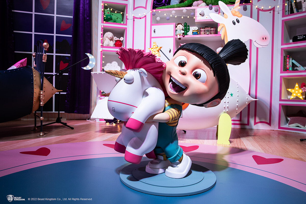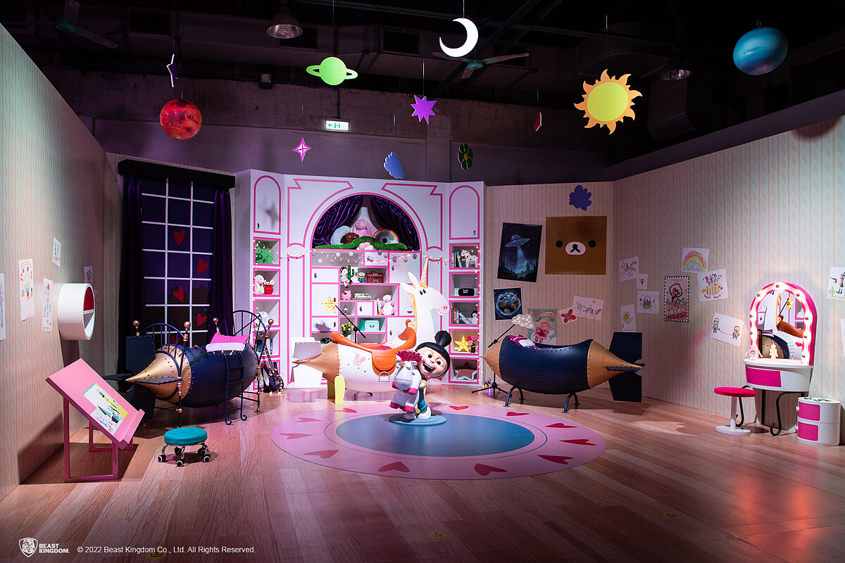 更精心打造1:1動畫電影場景實景還原,包含神秘的格魯實驗室、充滿夢想的女孩們房間、奇幻的獨角獸、各種反派角色,以及小小兵專屬特區等。