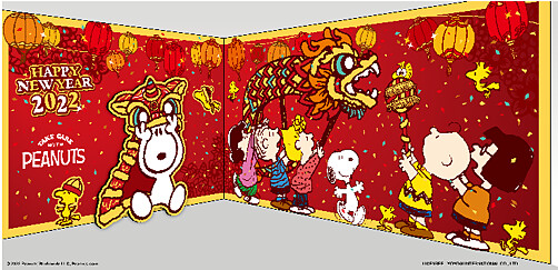 PEANUTS花生漫畫關愛巡迴展迎接農曆春節到來,在台中場特地打造了充滿過年氣氛的打卡牆,就讓Snoopy陪伴迎新年吧!