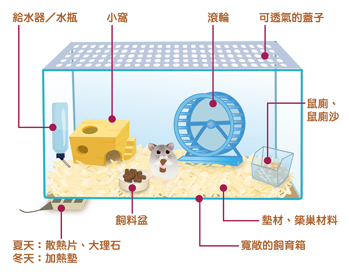 倉鼠喜愛穩定而溫暖的溫度,必須避免籠舍的環境溫差過大,並且保持乾燥。潮濕的環境可能會讓倉鼠生病。