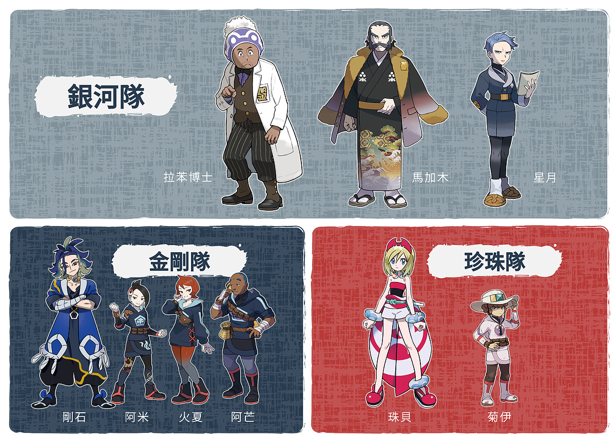 在洗翠地區,除了玩家們隸屬的銀河隊外,還有金剛隊、珍珠隊這2個團體。金剛隊與珍珠隊是自古以來就有的集團,但由於兩者的想法不同,彼此經常發生衝突,而銀河隊則處於中立的立場。