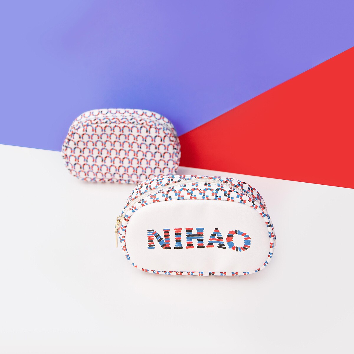 Filip透過手感編織的圖騰設計,呈現出「NIHAO」,而細緻包身配上金色拉鍊扣,質感滿分!裡面還有小內袋設計,讓大家收納更便利!
