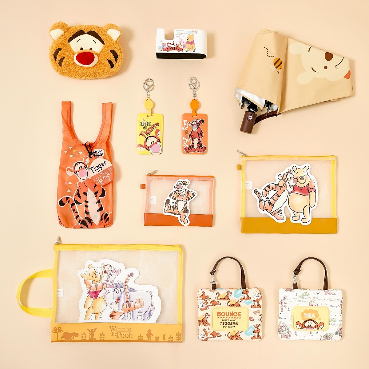 終於盼到虎年到,小熊維尼的好朋友「跳跳虎」這回終於當上主角,一系列的周邊商品中,可以看到牠充滿正能量、古靈精怪的可愛模樣,還有跟維尼、小豬、屹兒等好朋友們一起躍上自動傘、伸縮捲尺、山形夾等超多商品,作伙耍可愛的畫面,真的要萌翻人!