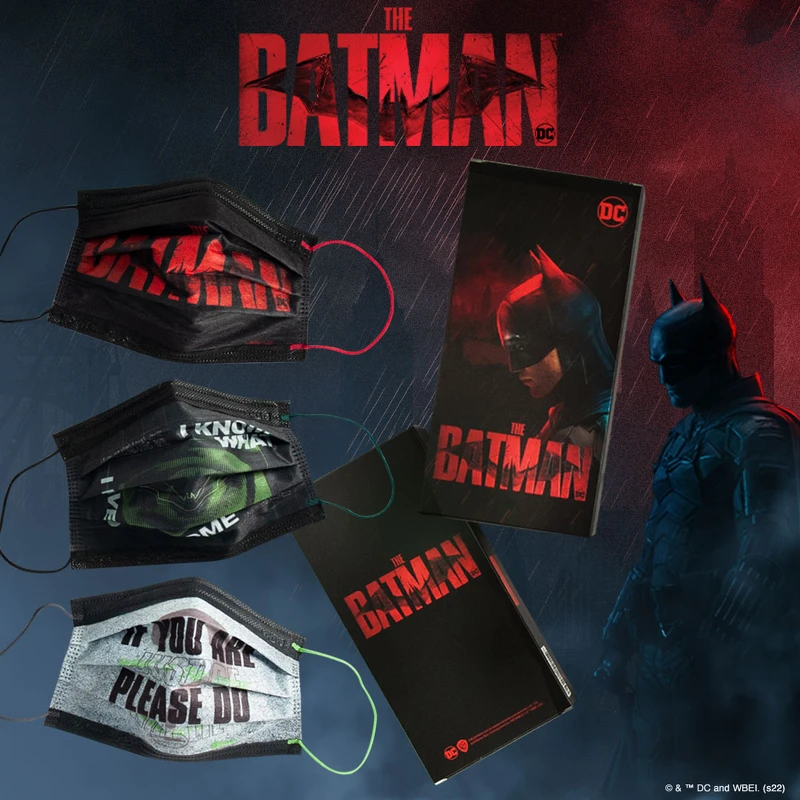 天啊!中衛推出蝙蝠俠口罩,以這次電影主題,口罩設計採用黑紅、黑綠、灰綠搭配THE BATMAN、謎天大聖(謎語人)的標誌來呈現。而不同色的耳繩也呼應了口罩圖面設計!外盒也具有小巧思,透過浮雕設計凸顯出蝙蝠俠暗黑風格。