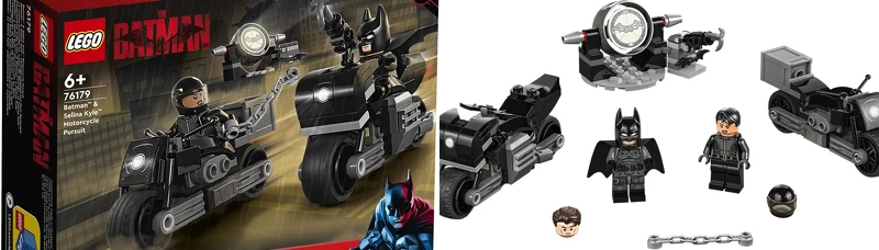 此盒組內有 6 隻出自蝙蝠俠電影的人偶:蝙蝠俠、瑟琳娜.凱爾™(Selina Kyle™)、謎天大聖、The Drifter、阿福和和戈登局長。每個細節都非常細緻,必須使用特殊放大鏡閱讀才能揭露線索。而當蝙蝠俠騎著摩托車冒險出動,他可喬裝成另一個身分:The Drifter。如果他帶著惡棍回來,Batcave 設有自己的監獄!