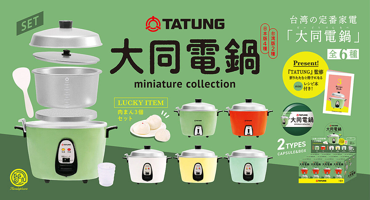 大同電鍋堪稱國民電鍋!是不少人家家戶戶必備的廚房神器,不只可以煮飯,可以透過電鍋變化出不同的料理。日本玩具公司 Kenelephant推出5款迷你大同電鍋盲盒&扭蛋啦!