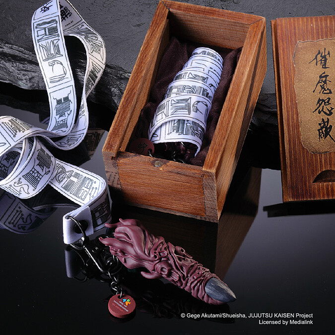 此外,還將《咒術迴戰》中用來綑綁手指的符咒綑布化身為證件掛帶,還附有封印宿儺手指的催魔怨敵木盒,真的是太欠收藏啦!