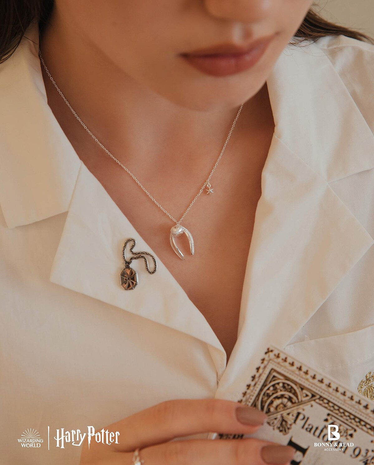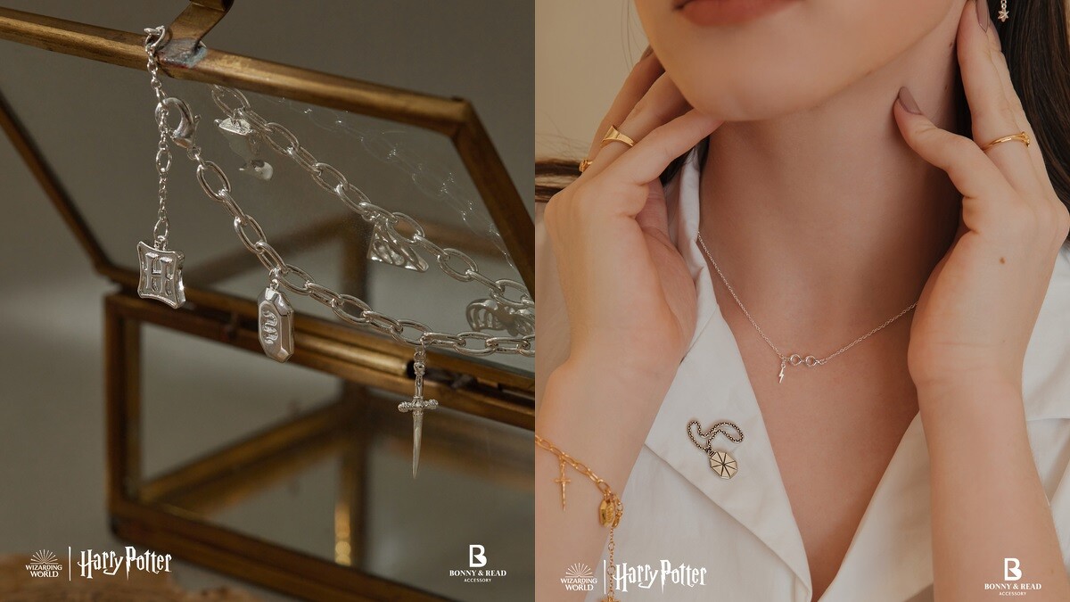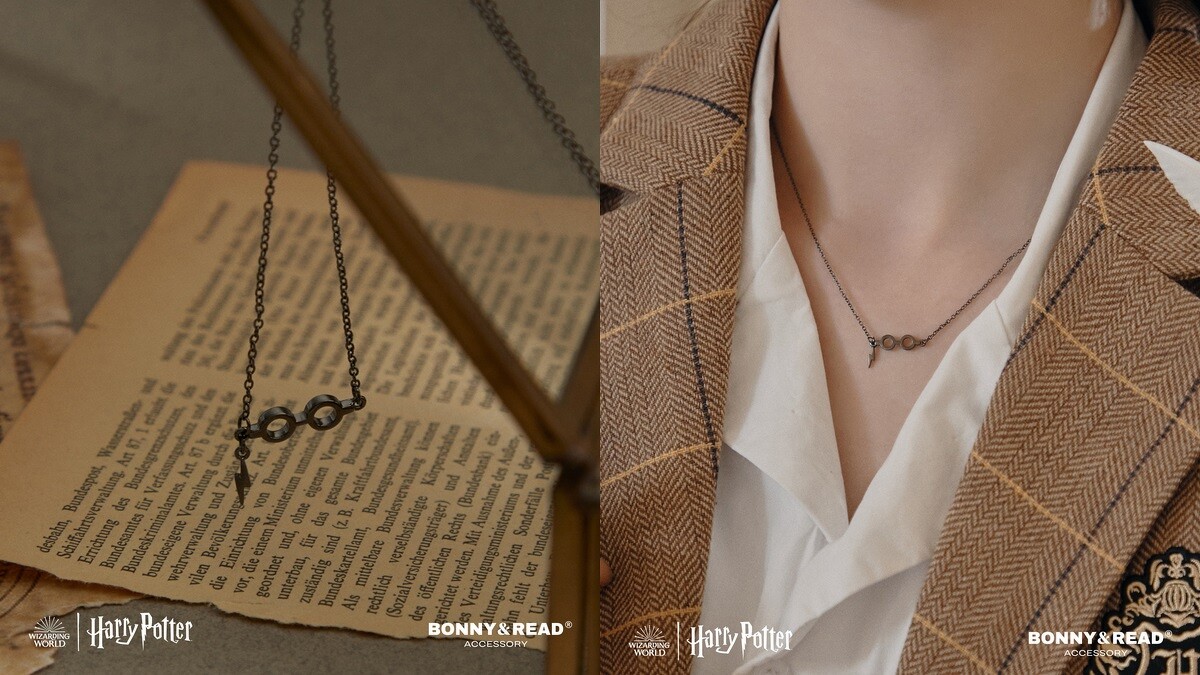 而最吸睛的,則是這次與台灣飾品BONNY & READ合作,推出5款限定飾品,融入霍格華茲城堡、魁地奇球場上最靈動的金探子、學院遺留下來的聖物,以及哈利波特最具標誌性的眼鏡跟閃電符號,化身成項鍊與手鍊,是不是必須收藏一波!