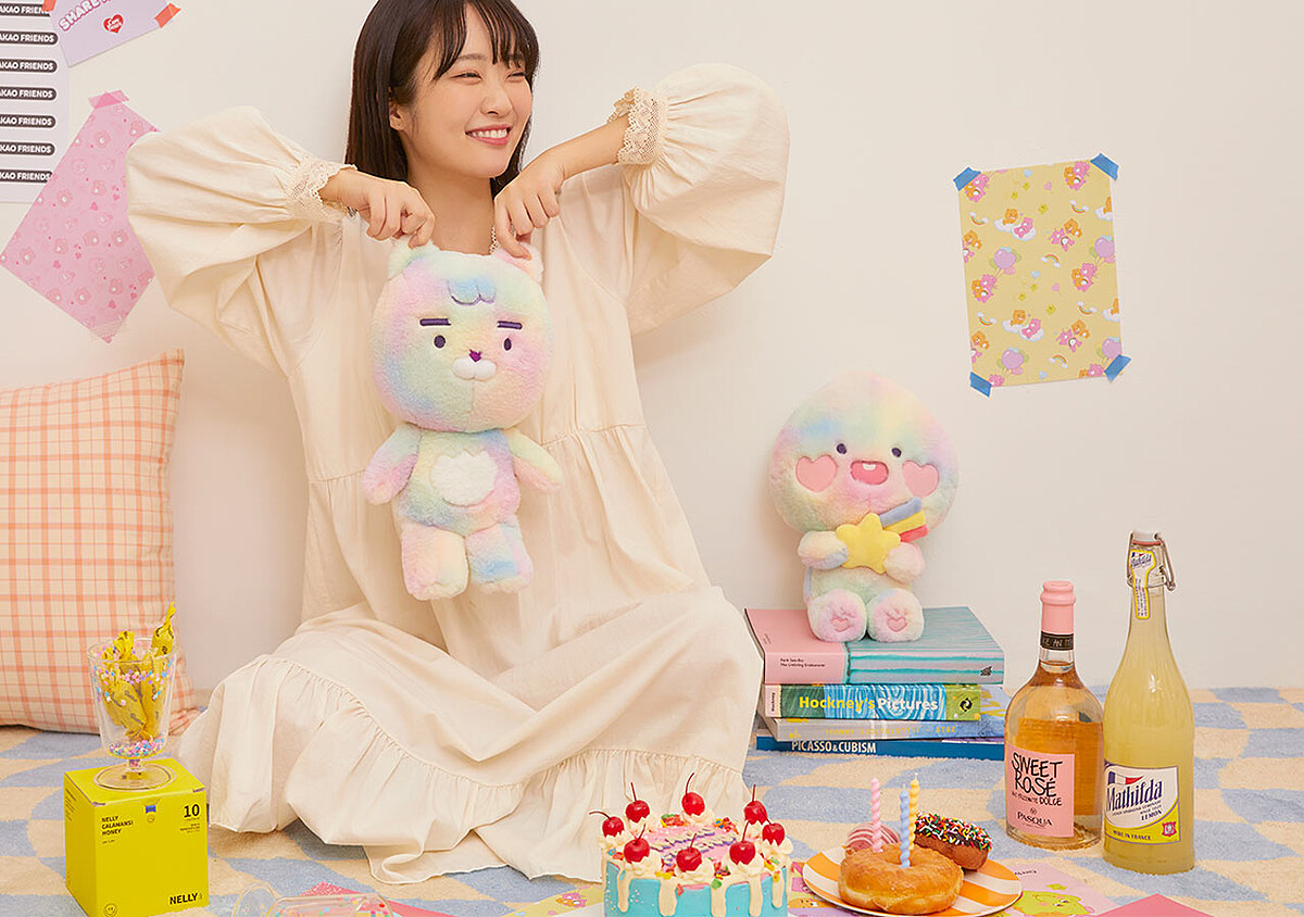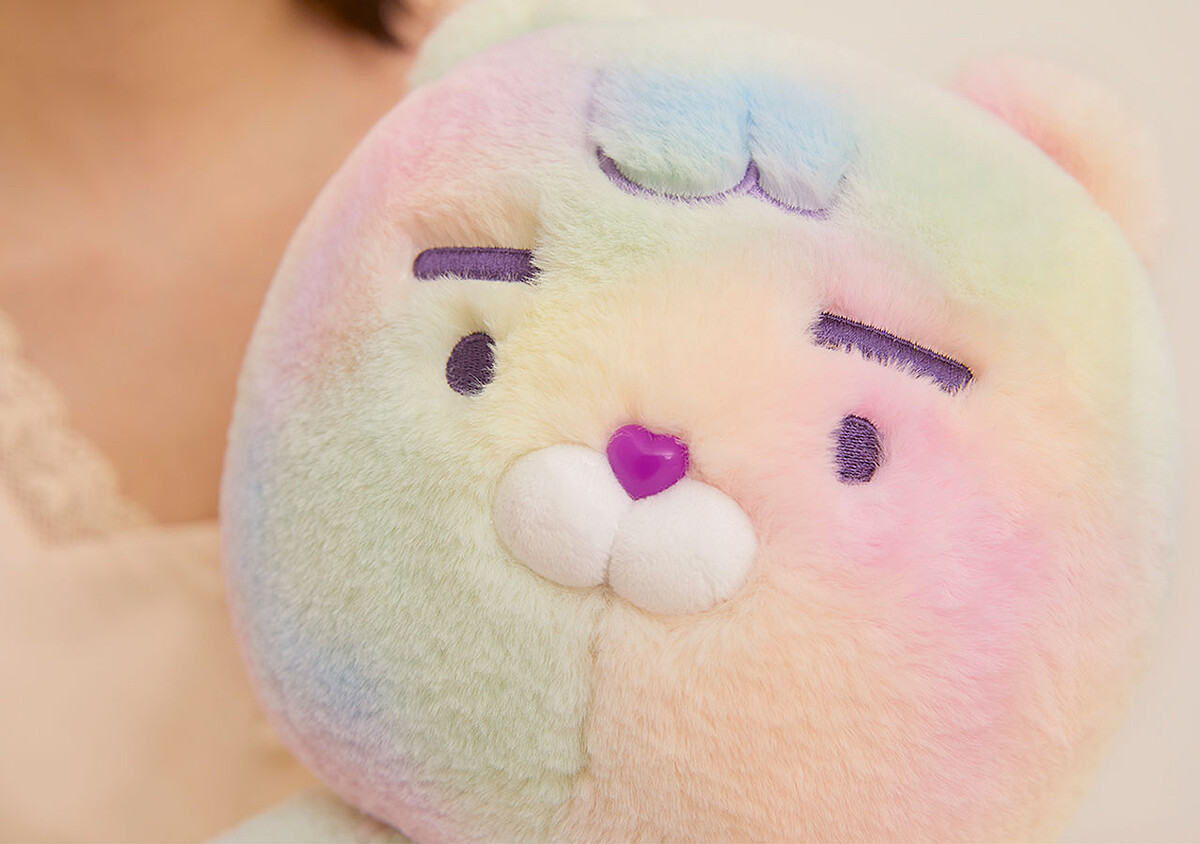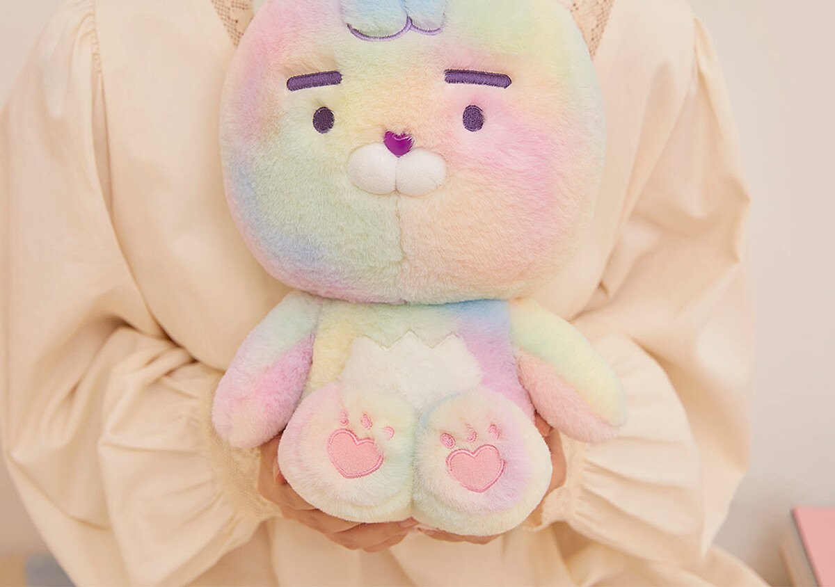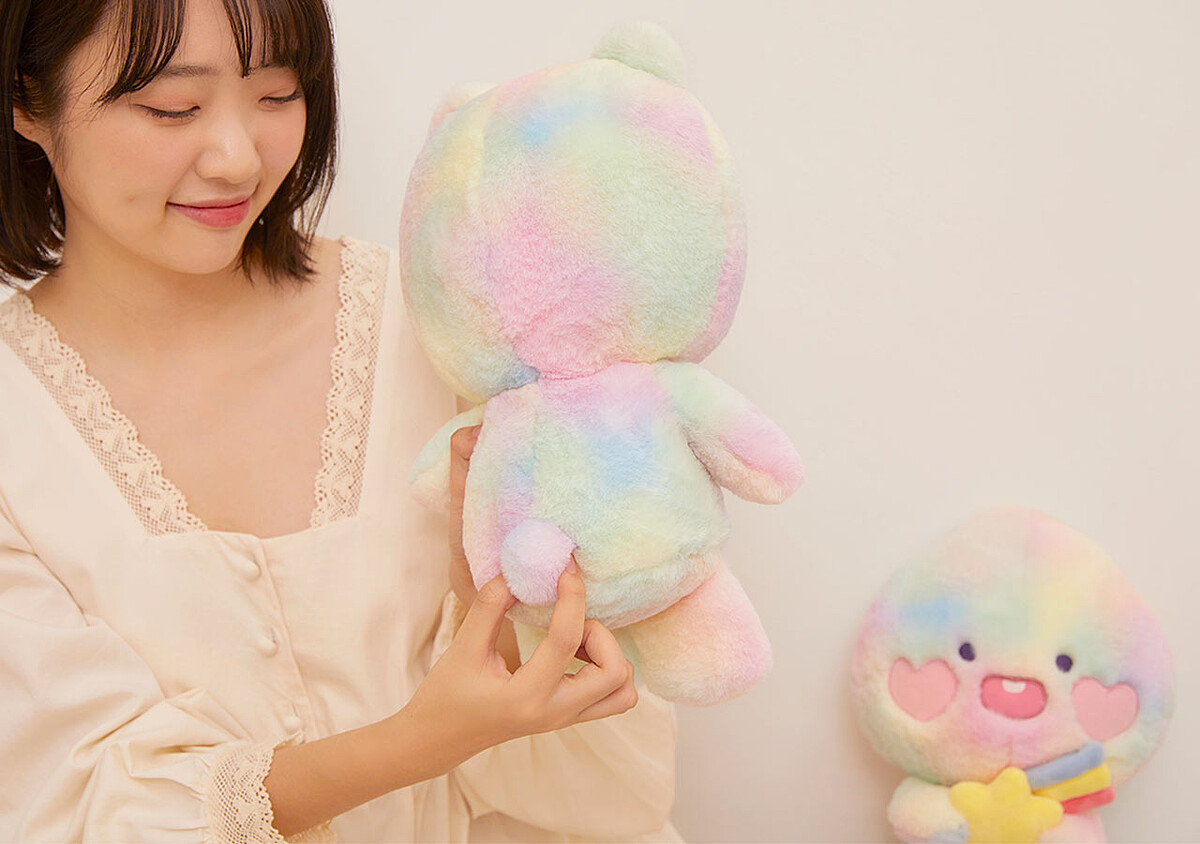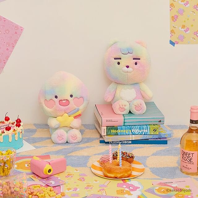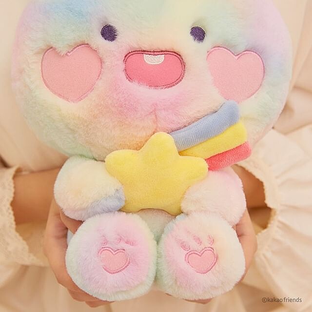 韓國KakaoFriends首度與美國人氣卡通CareBears攜手推出限量聯名娃娃、周邊商品!CareBears彩虹熊居住在雲之夢幻國度當中,以可愛的外觀及繽紛色彩深受大眾喜愛,萊恩進入了CareBears夢幻國度也一秒變成棉花糖彩虹色啦!
