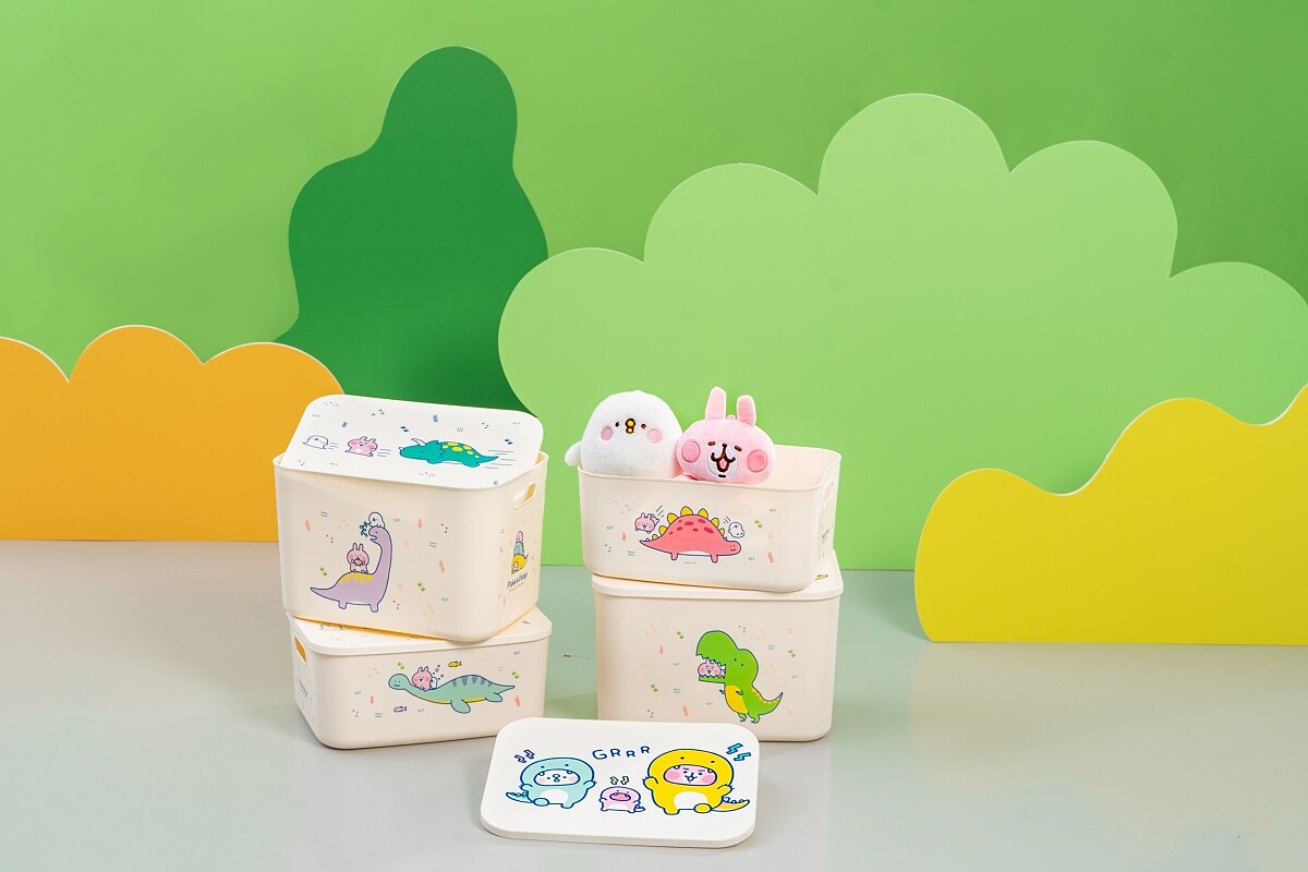卡娜赫拉的小動物+恐龍收納盒,附蓋可防塵,也能堆疊使用省空間,就讓超萌的恐龍替大家收納大小雜物吧!