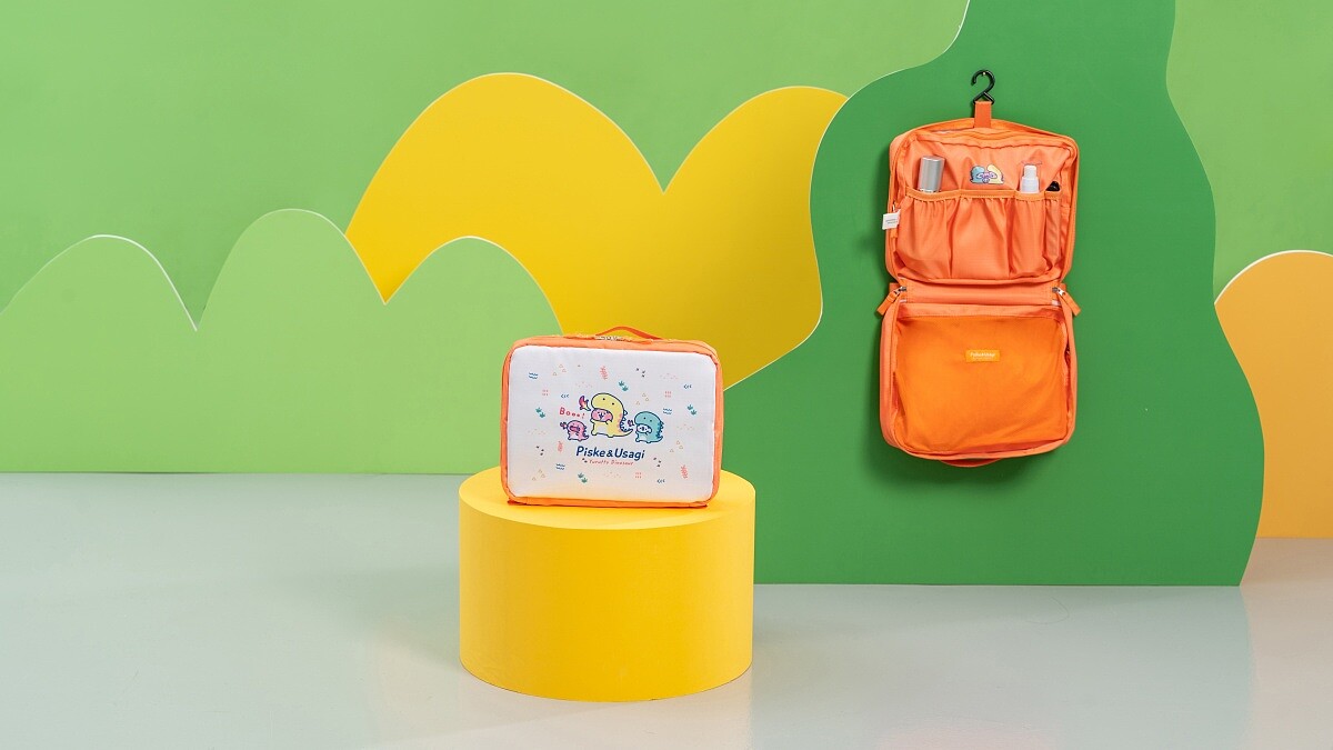 採用輕量化設計多功能萬用包,設有多格收納可分類外出用品,附有掛鉤可吊掛使用。內有通風網布格可放置毛巾或其他物品以便風乾。