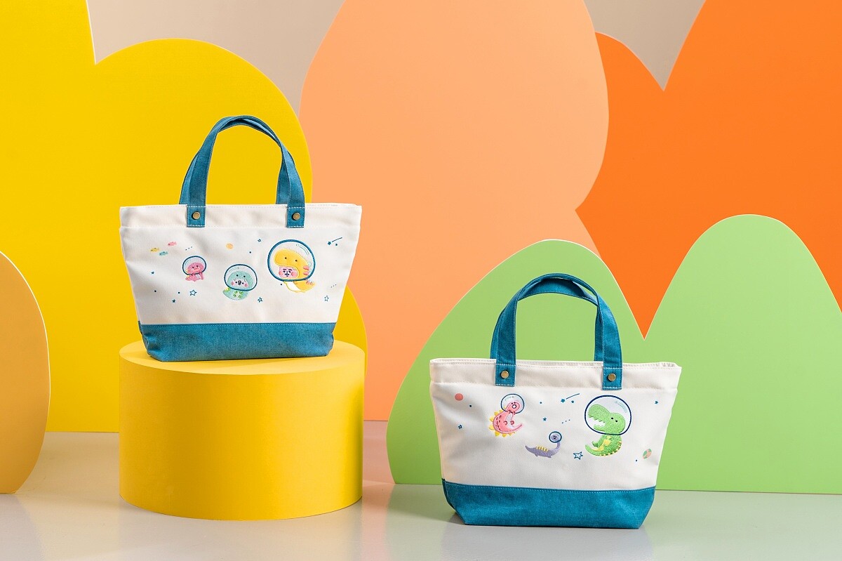 使用防潑水帆布材質,立體電繡與絨布圖樣,質感滿分!此外,袋內空間大,不管是便當盒、手機、票卡包、鑰匙等日常必需品,一袋就能輕鬆帶著走!