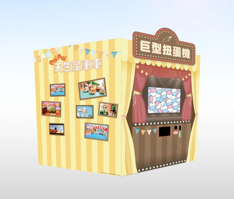 趣味遊戲區還有限定彈珠台讓粉絲進入復古時光,還有「閃亮胡蘿蔔」打卡牆,讓大家在玩遊戲後可以跟可愛的天竺鼠們合影!一旁的「巨型扭蛋機」更有經典畫面相片牆,展示著動畫中抓住銀行搶劫犯、殭屍和午餐等經典場景,真的是太可愛啦!