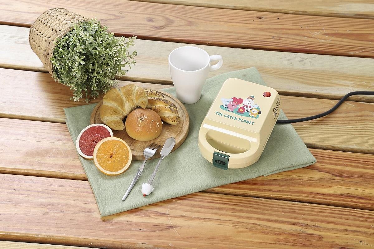 BT21粉絲們絕對不能錯過超萌的熱壓吐司機!鵝黃色的外型搭配小巧機身,不只可愛還很方便收納,操作簡易好上手!此外,不沾烤盤可以拆洗,非常適合日常加熱輕食或親子同樂使用,讓大家宅在家也能輕鬆享受居家烘焙的樂趣!