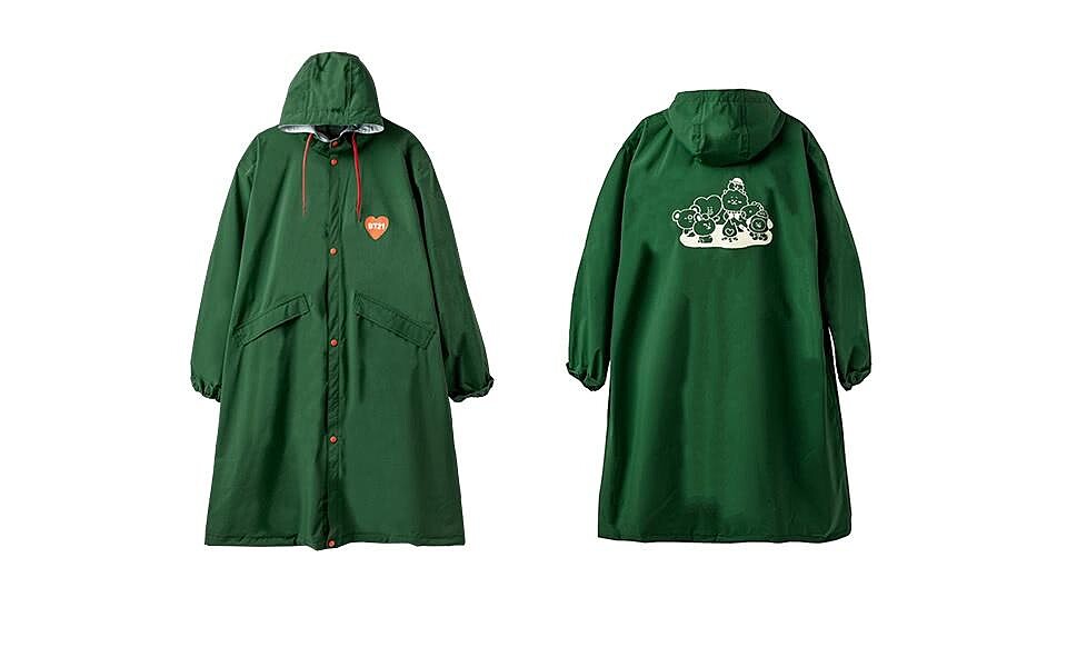 梅雨季即將到來,必收這款簡約時髦的BT21雨衣!材質柔軟不悶熱,防雨口袋可輕鬆收納隨身物品,正面印有BT21招牌愛心Logo,背面則是全角色大集合的圖案,搭配連帽設計,替outdoor風穿搭更添童趣感,此外,更貼心附上雨衣收納袋,隨身攜帶超便利!