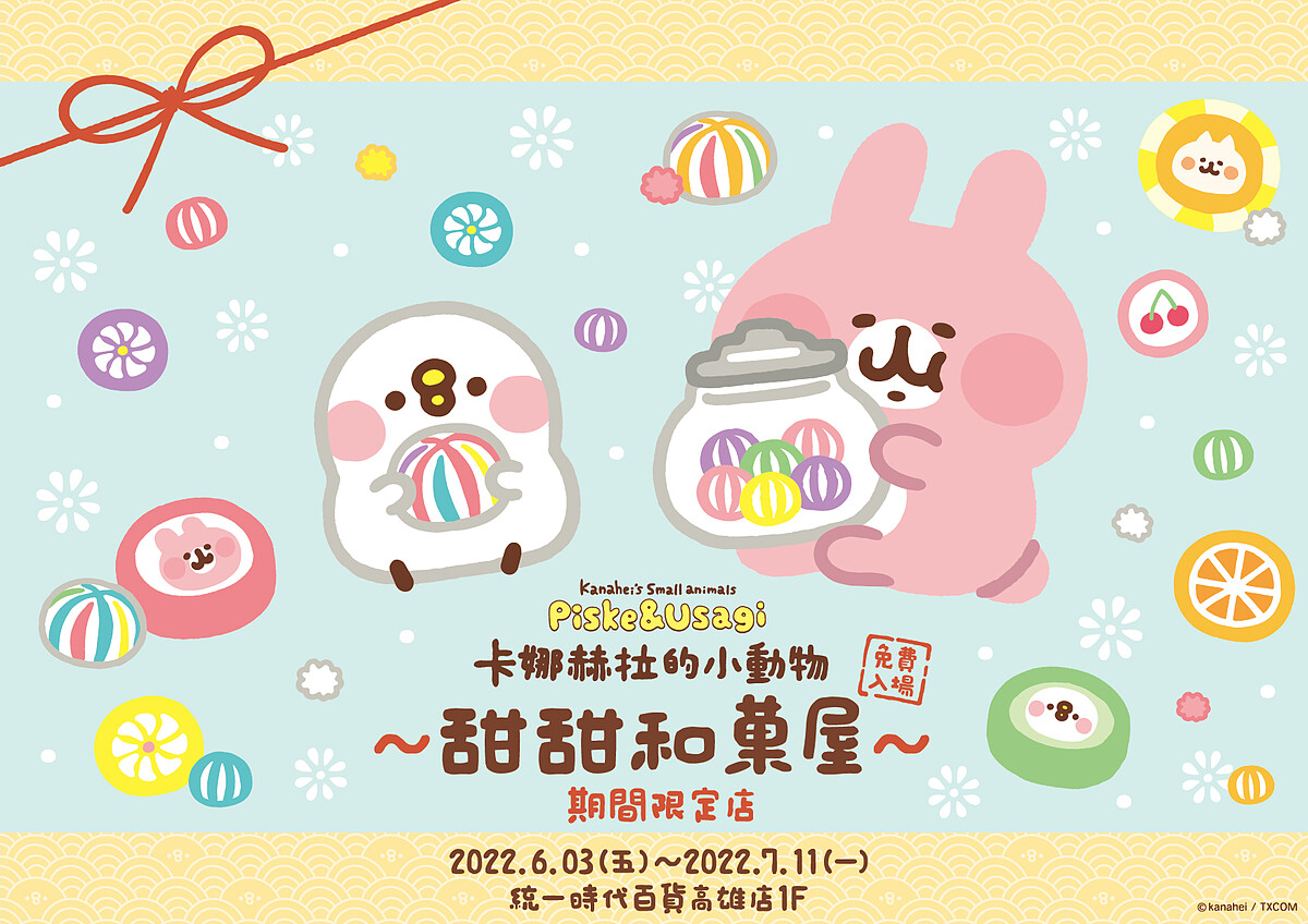 軟萌的卡娜赫拉的小動物現身高雄夢時代!這次以大家心心念念的日本為主軸,這次兔兔與P助將變身成櫻餅、大福等超療癒和菓子造型準備萌爆粉絲啦!現場除了有怎麼拍都可愛的打卡景點外,還有療癒又實用的周邊商品等著大家帶回家!