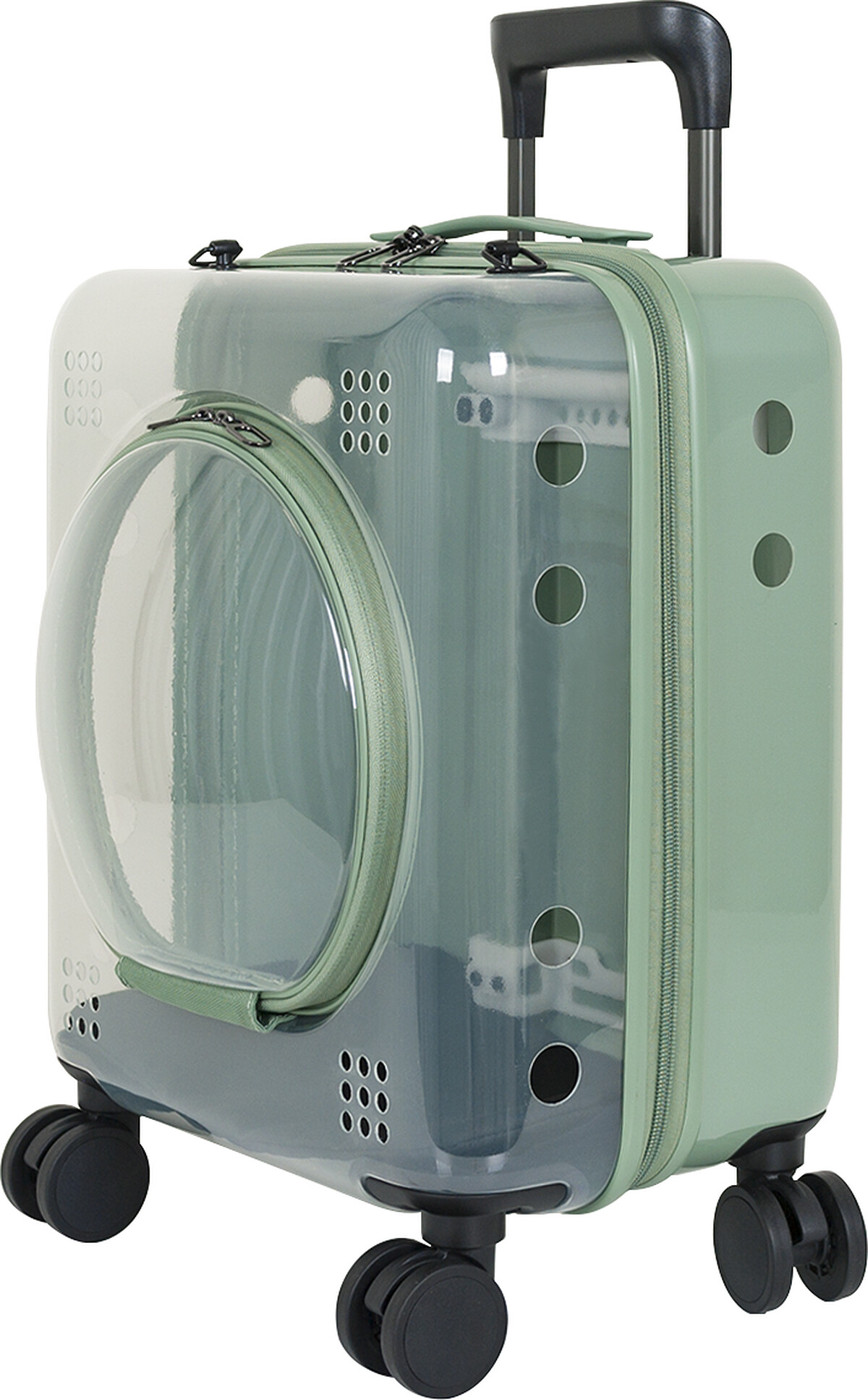 CROWN酪梨綠「透明拉鍊寵物箱」15吋售價5,980元。