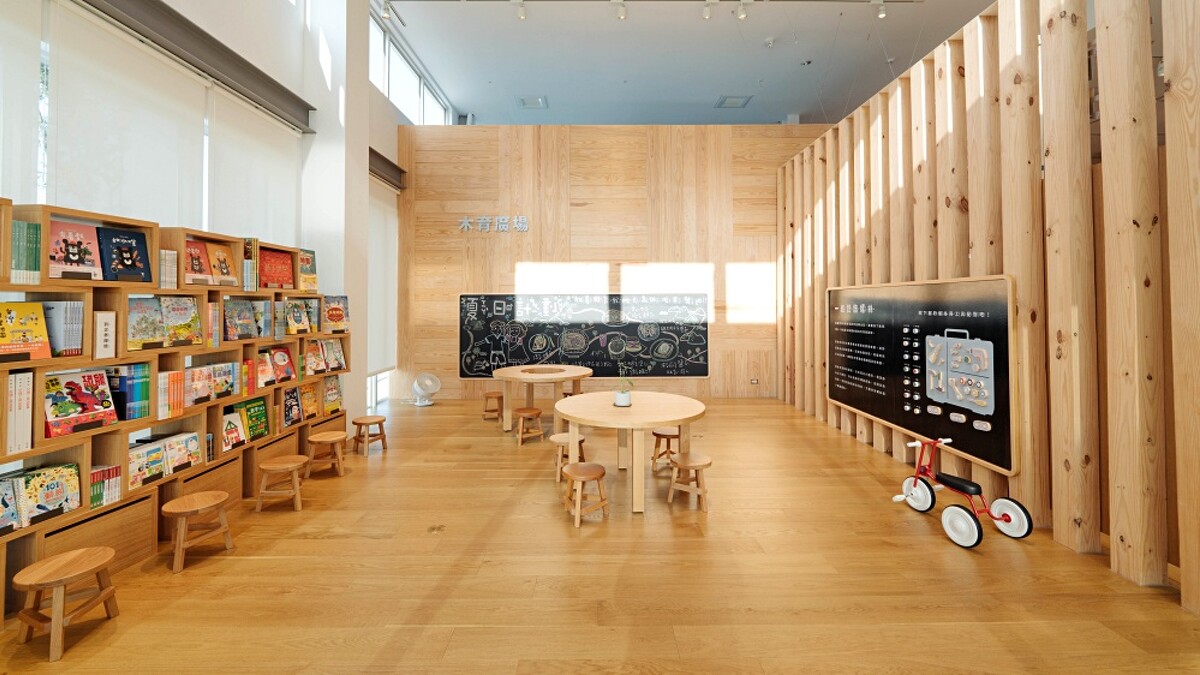 岡山門市打造15坪大的「木育廣場」,提供近500本童書繪本,並特別製作兩面黑板,能夠拿起粉筆繪畫,另一面則以回收木材製作成的「螺絲形狀造型磁鐵」,傳遞岡山為全台螺絲重鎮的意涵。
