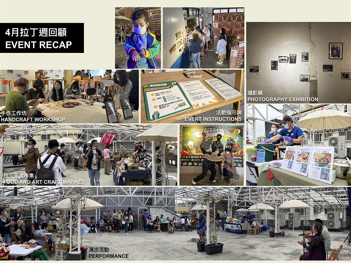 由 城市文化週 Culture Week Now 主辦,2022年4月的拉丁市集在充滿熱情的拉美音樂和歡樂笑語於台中「篤行1913生活聚場」頂樓熱鬧展開,許多從世界各地遠道而來的朋友們,帶來各自家鄉的味道和萬種風情,讓當天參與的所有台中朋友們迫不及待敲碗,期待再次感受拉丁熱情文化。