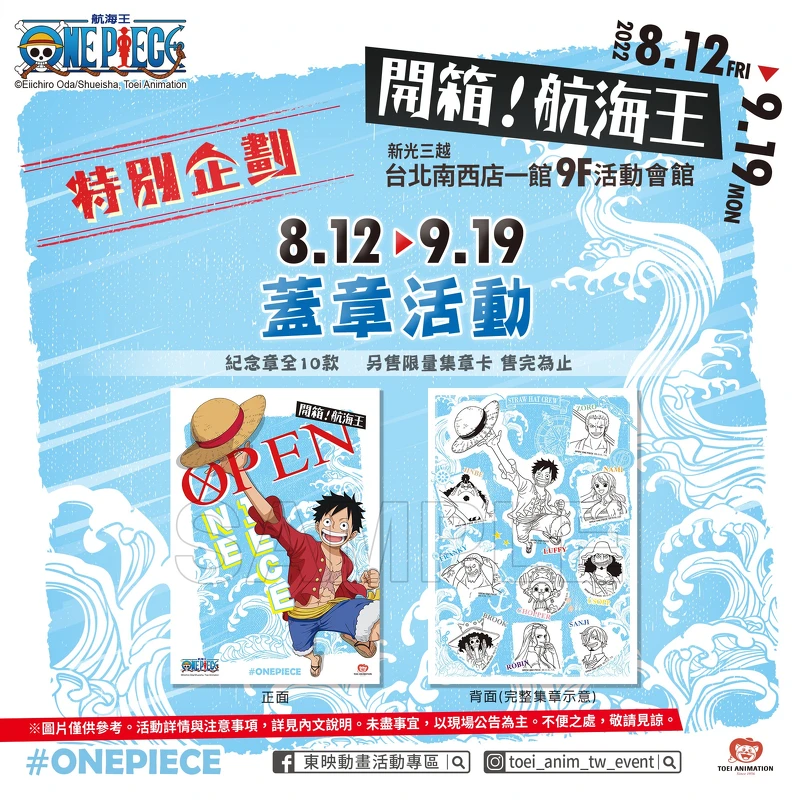 《OPEN!ONE PIECE 開箱! 航海王》期間限定快閃店讓你天天有新驚喜,每週將會推出不同的限定人物印章,等著航海王迷們來蒐集!