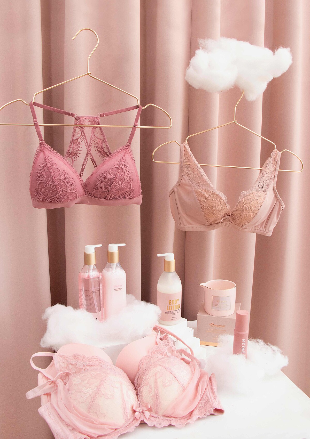 Qmomo「粉紅串聯專區」包括零束縛的無鋼圈內衣、舒適包覆的軟鋼圈內衣、穩定支撐的運動內衣,除了各式內衣種類之外,更有Qmomo獨家私密處保養噴霧、超保濕滋潤水光乳、貼身衣物手洗精等周邊商品,多款精選人氣商品,讓消費者化購物為愛心,以行動支持公益。
