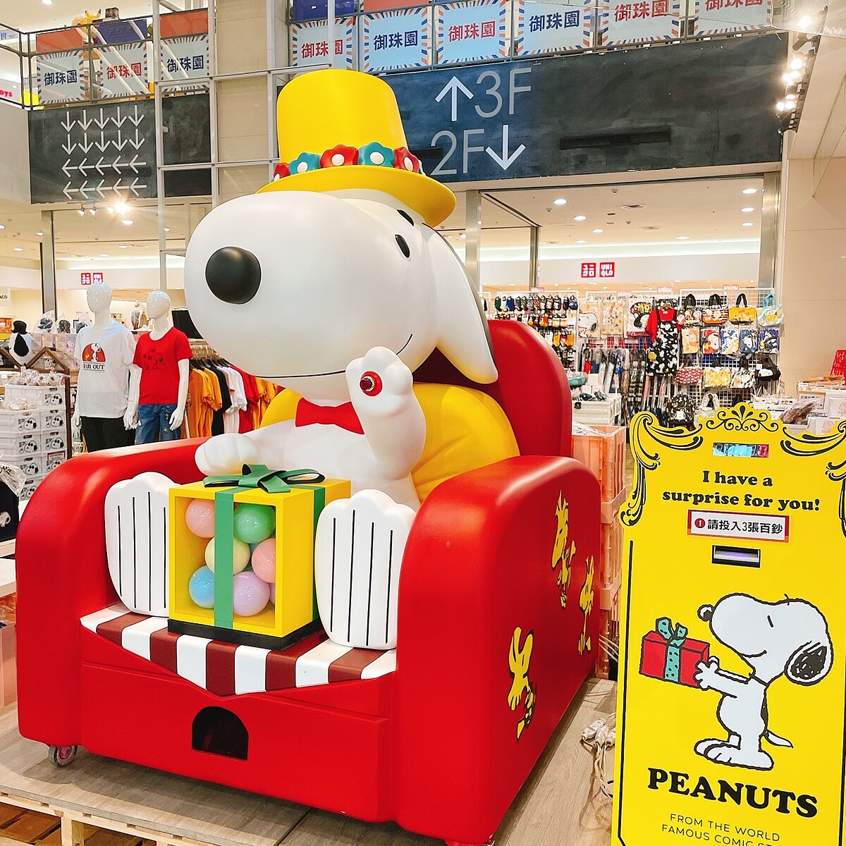 而這次的扭蛋機居然是Snoopy慵懶坐在沙發上的造型,讓人好想整台抱回家啊!除了拍照之外,大家也可以試試手氣,看能不能把大獎帶回家!