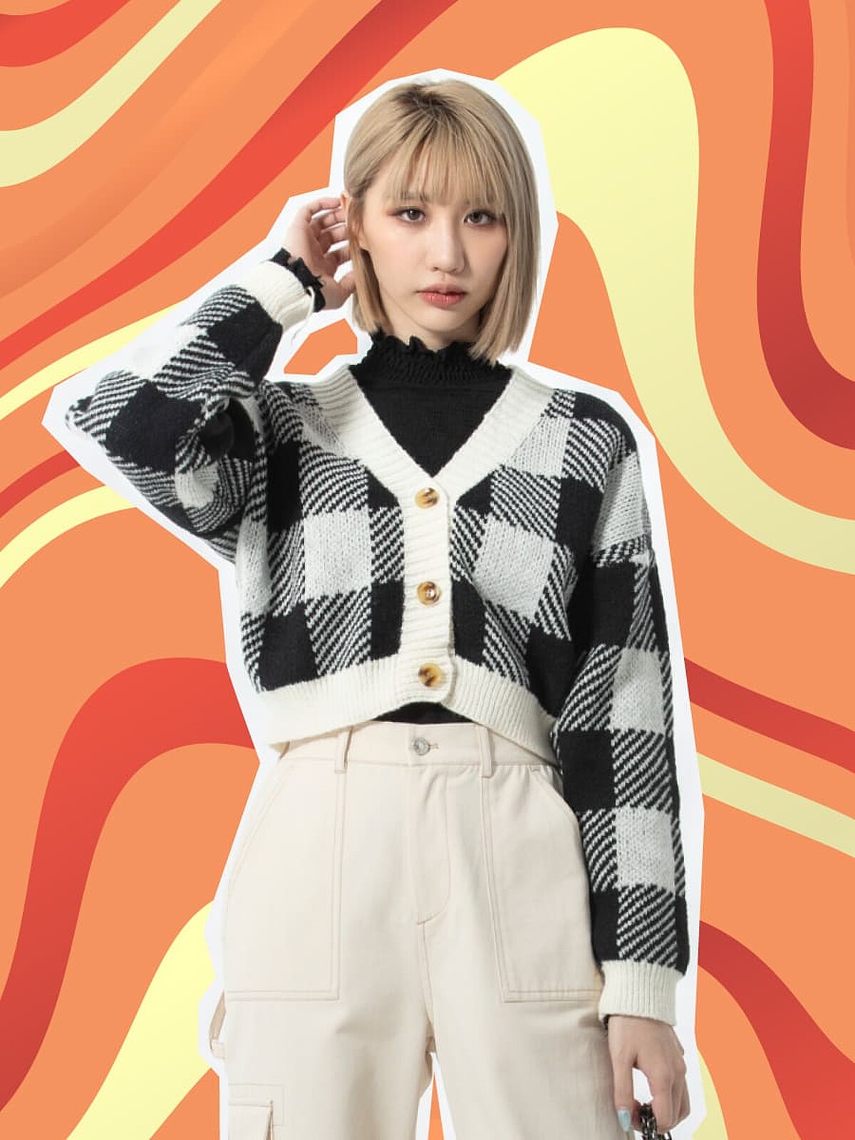 此外,更將復古優雅的女孩造型也一併加入2022秋冬的商品行列中,可以看見格紋針織外套、水藍色寬版西裝外套、小香風兩件式短版針織上衣,輕鬆又自在的優雅風格,讓今年秋冬有更不一樣的選擇!
