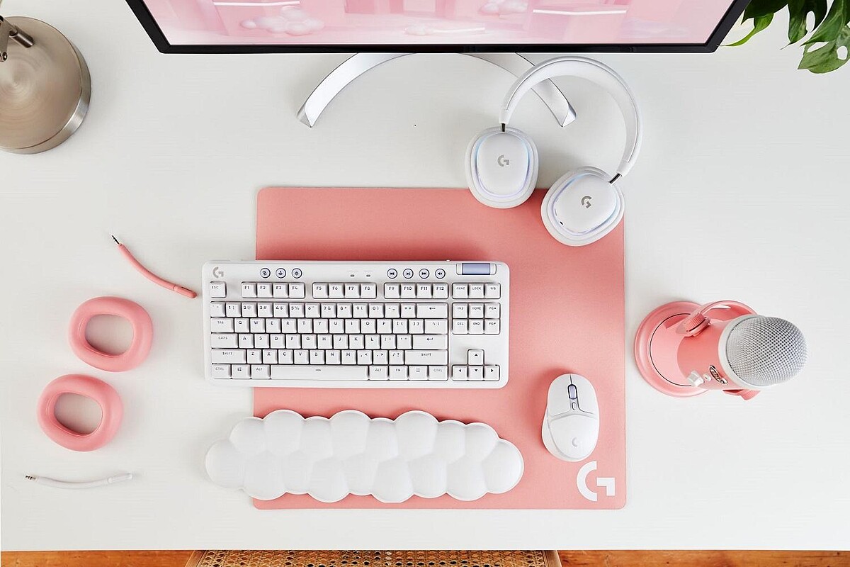G715/ G713無線鍵盤支援紅軸和茶軸兩種軸體,觸感軸-柔和的碰觸感提供相當程度的觸感回饋、線性軸-完全順暢的按鍵感,讓使用者能夠自由選擇喜愛的敲擊感!此外,底部更搭配了Q彈柔軟又可愛的雲朵掌墊,俏皮又兼具功能性,使用鍵盤時墊在雙手下方,不論是工作、玩遊戲都能更舒適!
