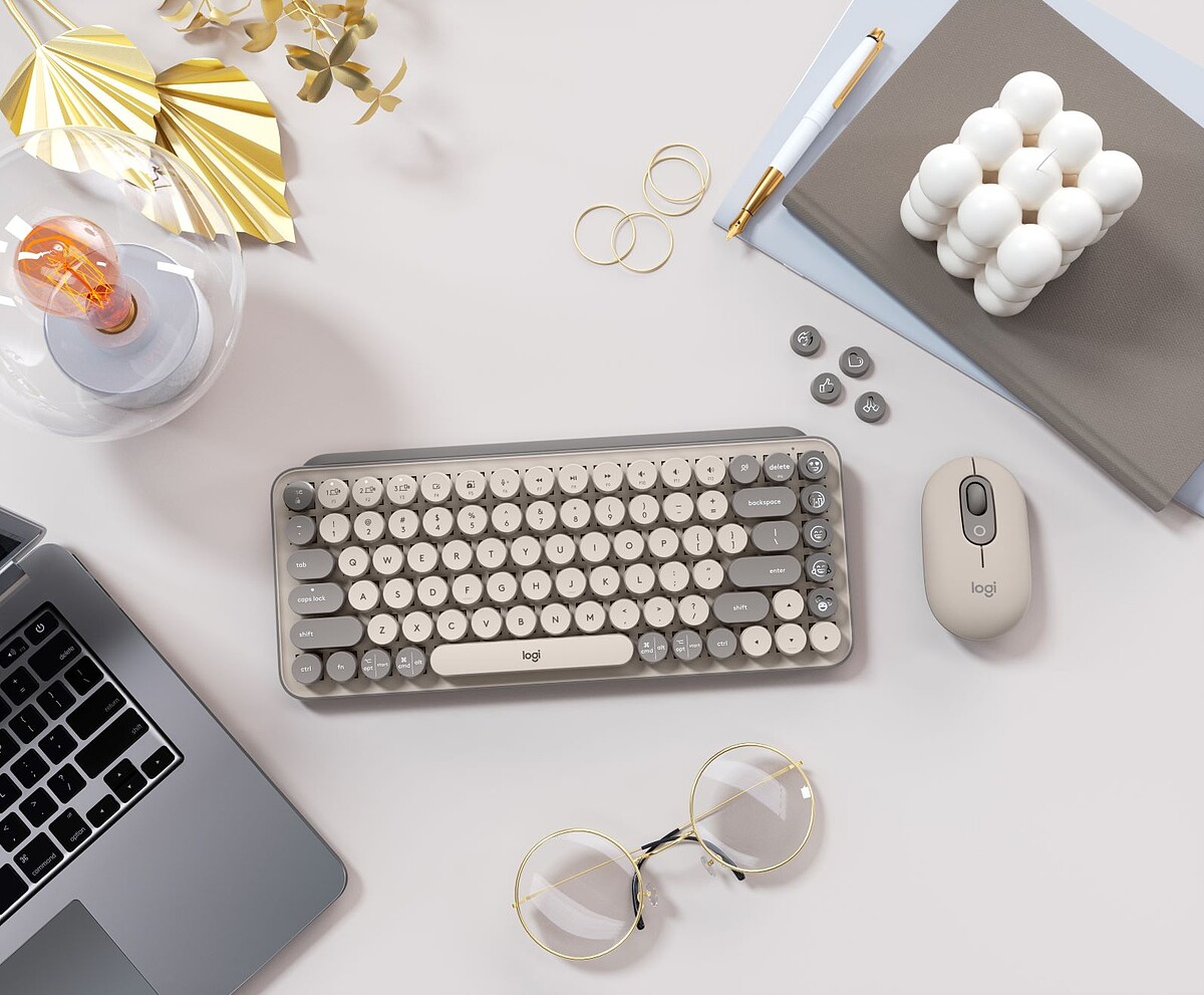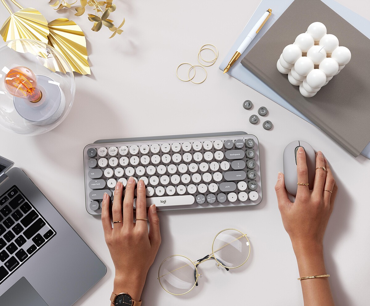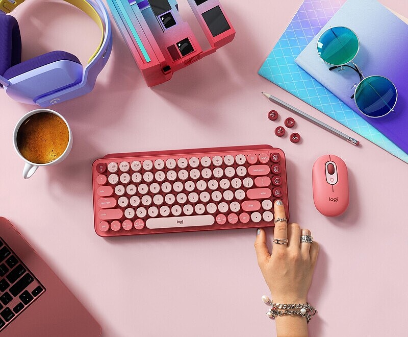 最讓人驚喜的POP KEYS無線機械式鍵盤是全球首創可更換EMOJI鍵帽,POP MOUSE則配有頂部按鍵,可透過Logitech Options+軟體自行設定常用EMOJI表情符號,共配置8款可替換鍵帽,像是全球最常使用的「笑中帶淚?」、台灣最常使用的「愛心❤️」等表情符號,讓你一「鍵」發送,隨時隨地傳送,真的太可愛!