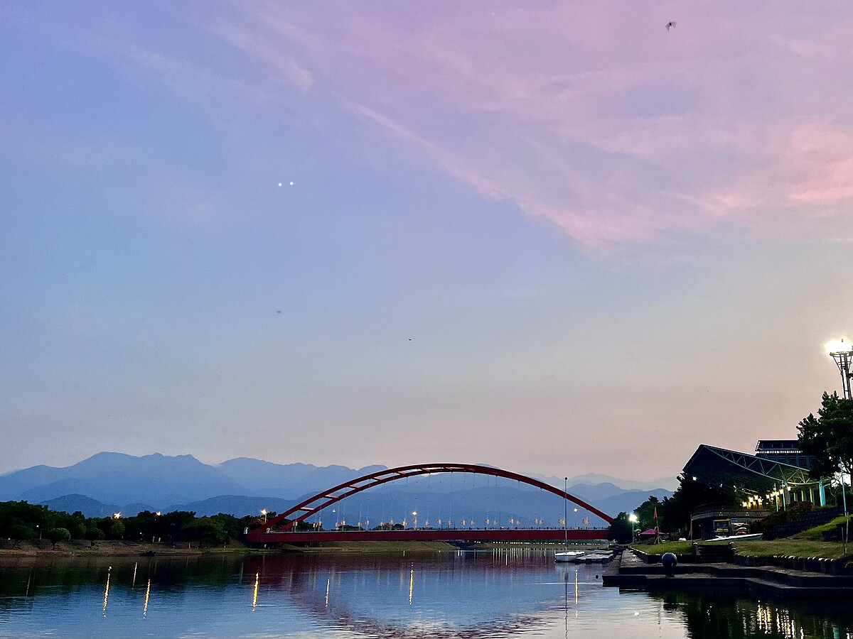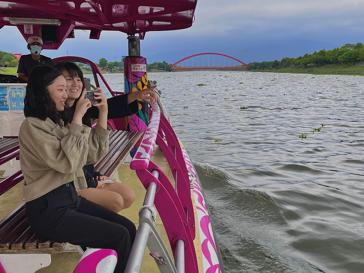 傳藝傍冬山河而建,碼頭外即是壯闊河道,於日落時駛入冬山河,涼風360度吹撫,還有機會親睹烏魚躍出水面,聆聽船長訴說冬山河故事的同時,船也漸駛近利澤簡橋,鮮紅拱橋襯中央山脈,無高樓破壞的天際線,從河面最能拍到壯闊橋景!隨天色暗下,有機會能遇月亮升起,船班駛進親水公園停留,下船登上河堤與利澤簡橋合影,跟著煙波人員燃起仙女棒,在漸暗天色下憶童心。
