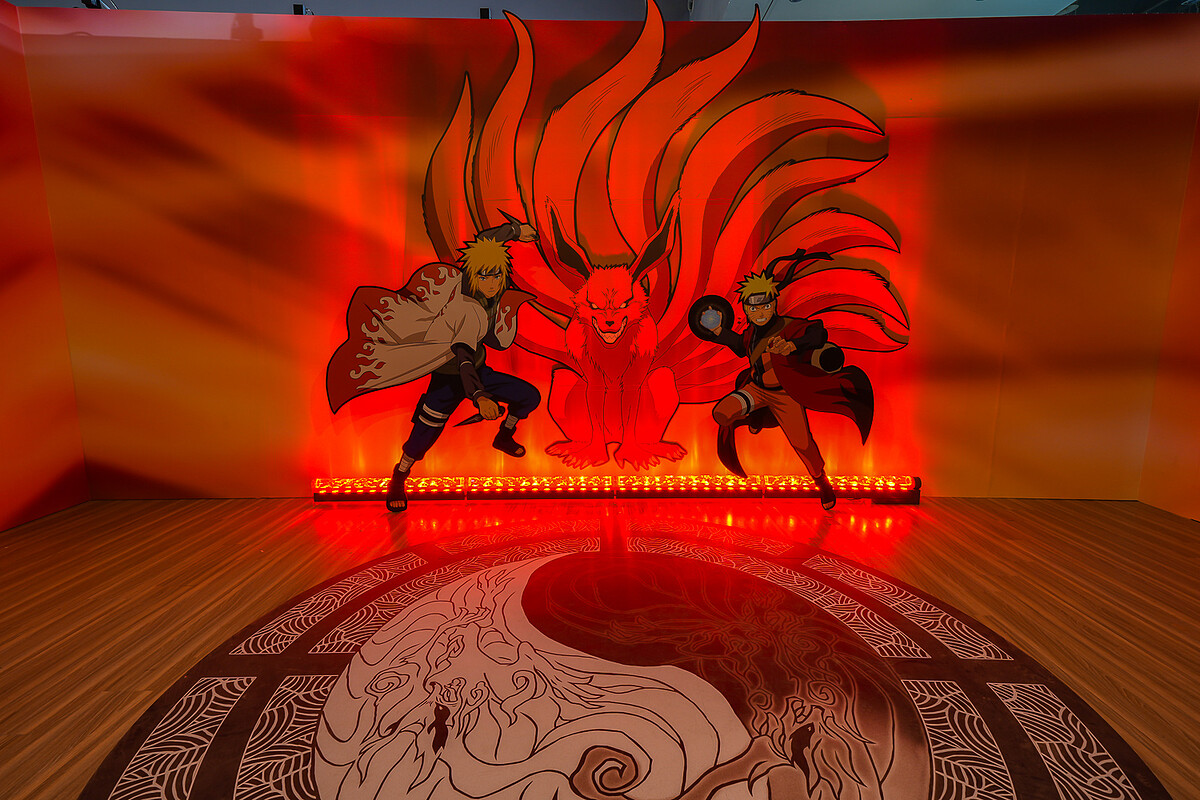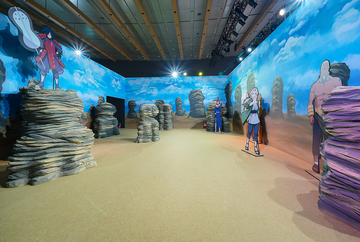 而動畫當中多個令人難忘的片段,像是鳴人父子在第四次忍者大戰當中使用九尾陰陽陣的「父子共鬥」場面,還有第四次忍者大戰「五影對戰宇智波斑」的熱血場景、《慕留人 -火影新世代-》當中鳴人跟慕留人合力製造「螺旋丸」打敗桃式、《慕留人 -火影新世代-》中的「七代目火影辦公室」,全都擬真還原在展場中。