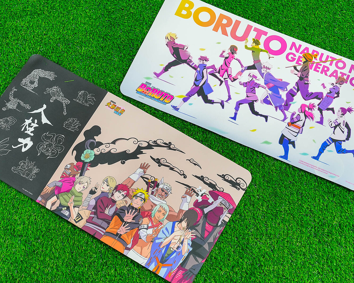 火影迷們的日常生活中絕對不能沒有火影忍者的周邊啊!必買的像是印有《火影忍者》動畫20週年主視覺及曉組織經典標誌的「地墊」,還有印有超殺人柱力及《慕留人 -火影新世代-》的兩款造型「電競滑鼠墊」。