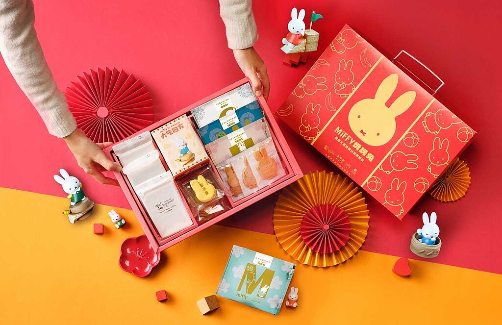 迎接2023兔年到來,當然不能錯過超應景的「miffy米飛玩玩兔年節禮盒」,與微熱山丘、李亭香等品牌攜手合作打造,可以品嚐到米飛芭娜娜拼圖餅乾、花漾錢兔中式糕點、米飛新年餅乾,以及歐客佬的濾掛精品黑咖啡,還有附贈可愛的「米飛大吃四方盒玩公仔」,最讓人驚喜的是可以化身為永續利用對戰彈彈樂紙盒,吃喝玩樂一次齊全,這一盒真的太超澎湃,絕對會讓收禮人超驚喜!