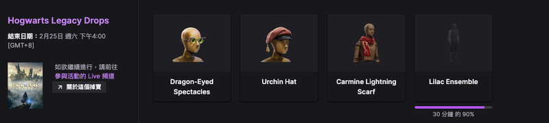 更多詳情請洽《霍格華茲的傳承》Twitch掉寶活動網頁