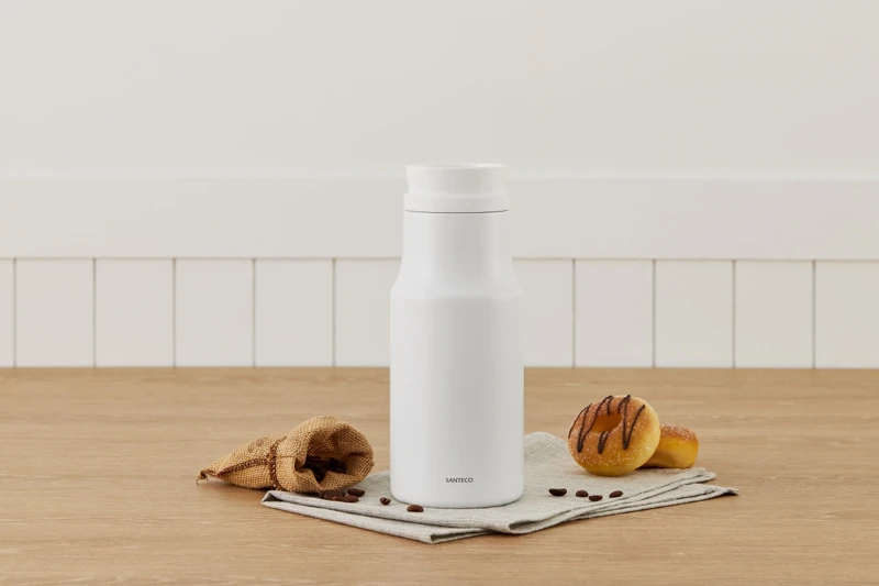 外觀時髦簡約,搭配超大容量搭配雙層真空保溫,簡單按壓設計,杯口360度都能倒出,不論是家用,或是帶出去野餐、露營都非常適合!