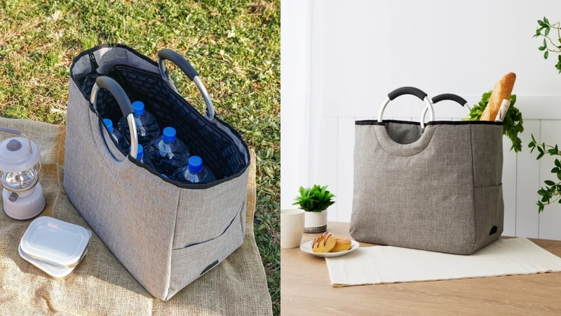 這款超大托特購物包,荷重15kg可裝7瓶2L的寶特瓶,特別採用好握輕量鋁製提把,保冷又高荷重,讓你採買購物時不只無負擔,還能很時髦!