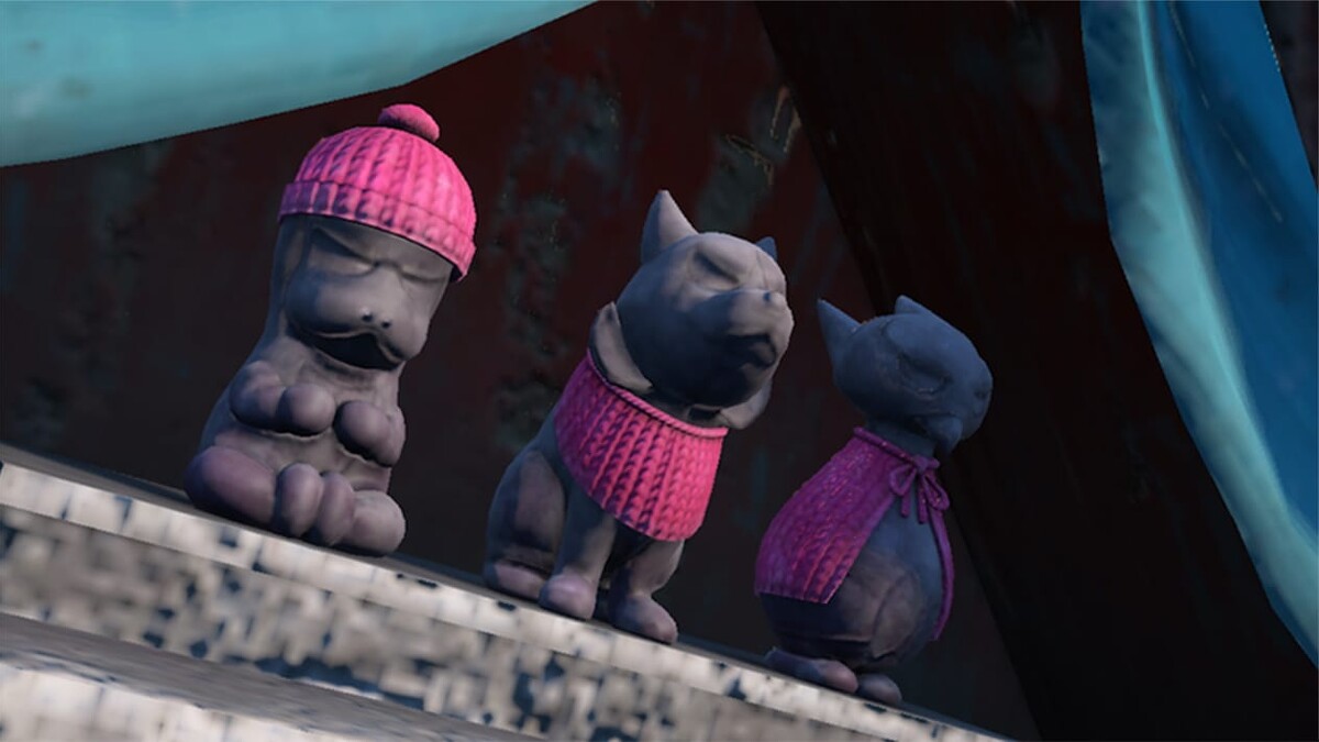 在鎮外的一小段距離處,有一個名為「寶伴廣場」的小公園。這裡擺放著夠讚狗、願增猿和吉雉雞這三隻寶可夢的石像,被當地居民親切地稱為「寶伴」。